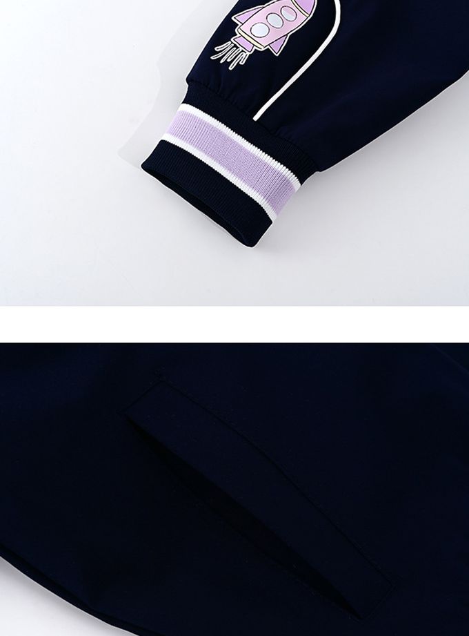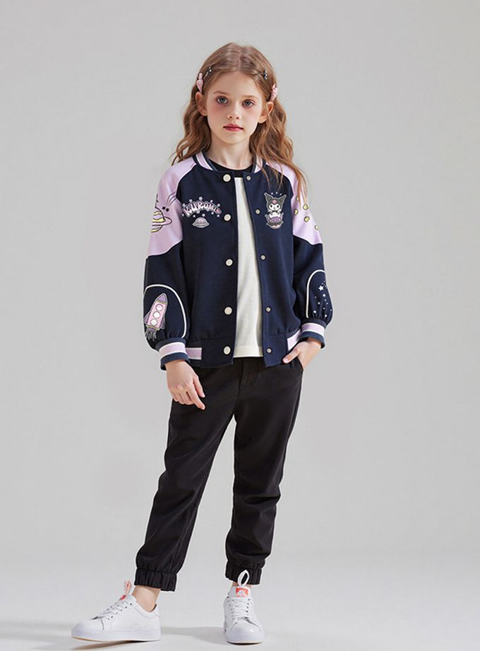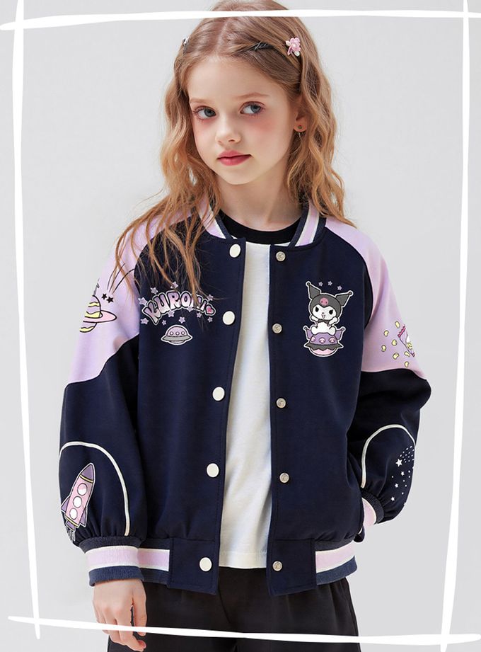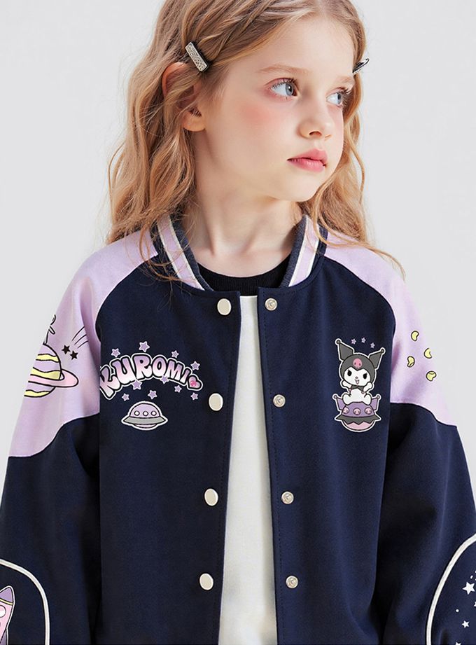 人氣卡通 - 撞色拼接棒球外套-卡通人物酷洛米-藏青
