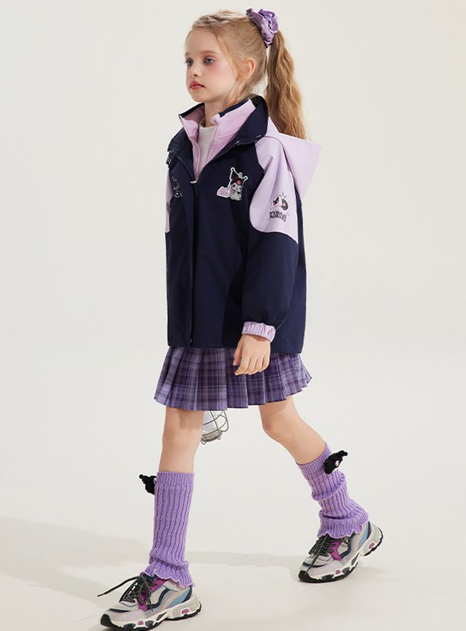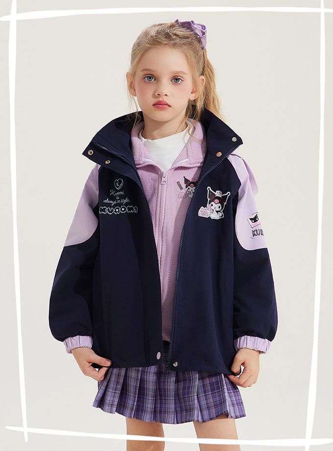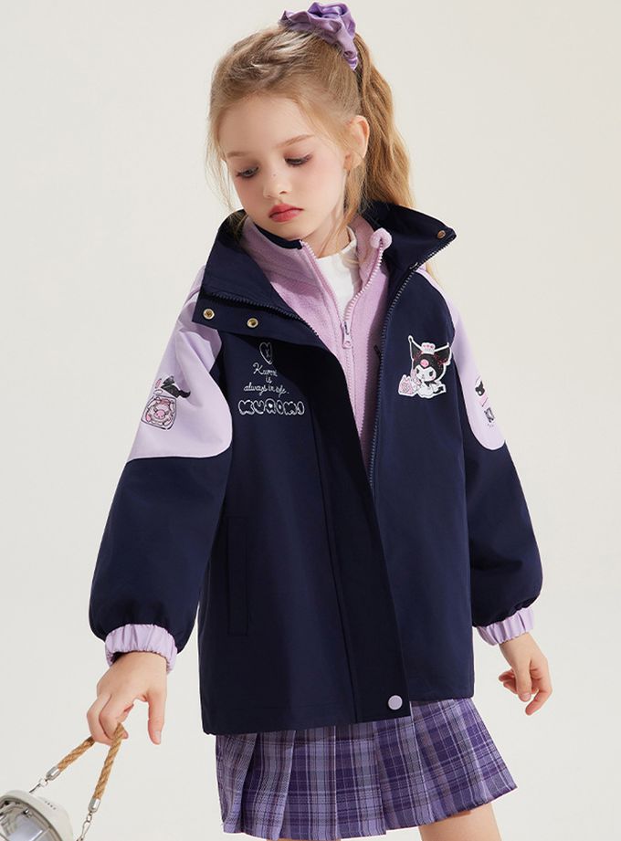 防風x保暖搖粒絨兩件式衝鋒外套-卡通人物酷洛米-藏青