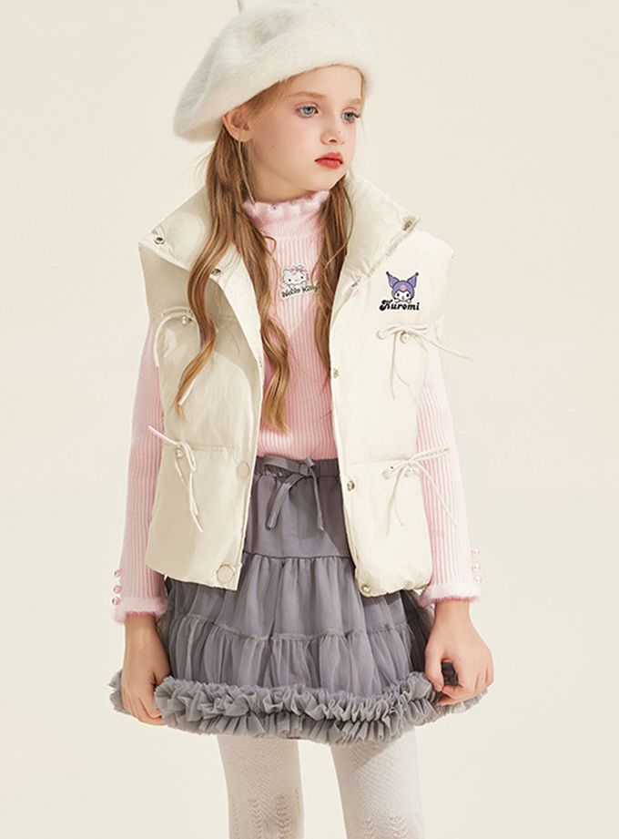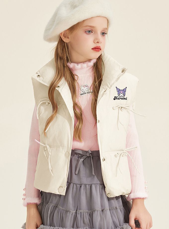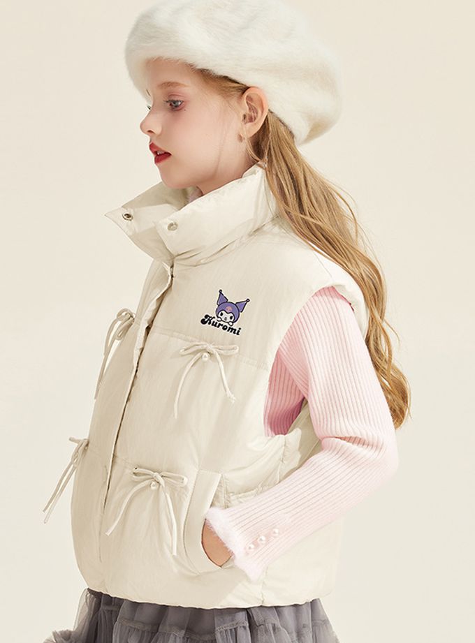 人氣卡通 - 90%羽絨珍珠蝴蝶結背心-卡通人物酷洛米-杏色