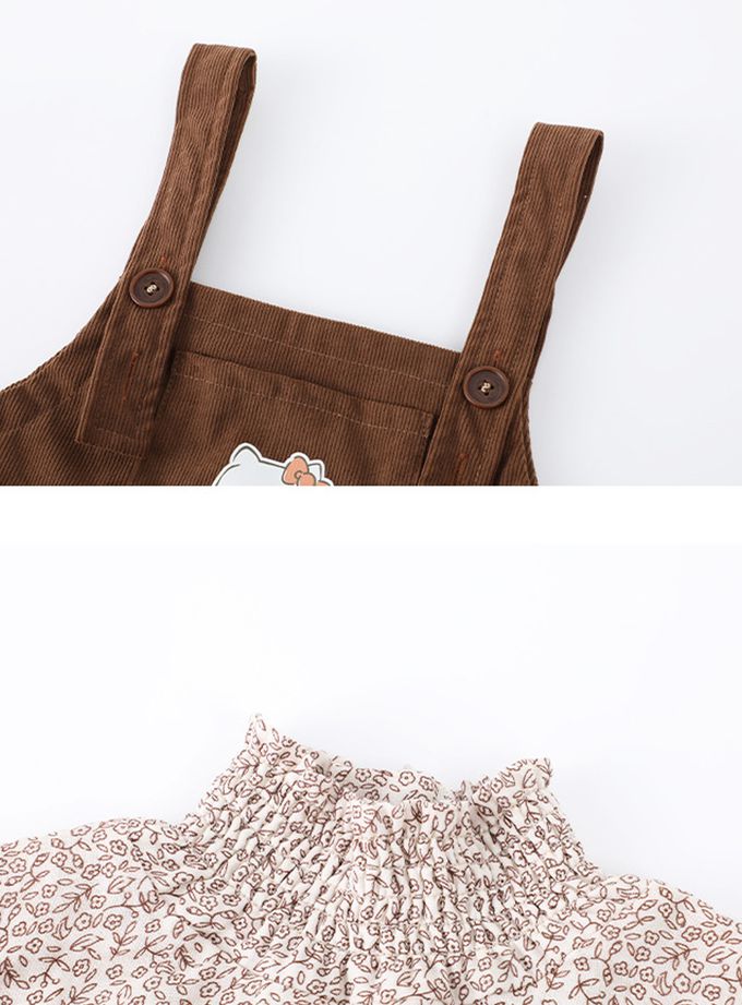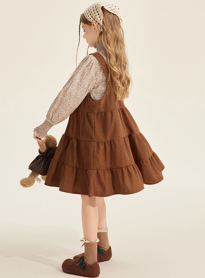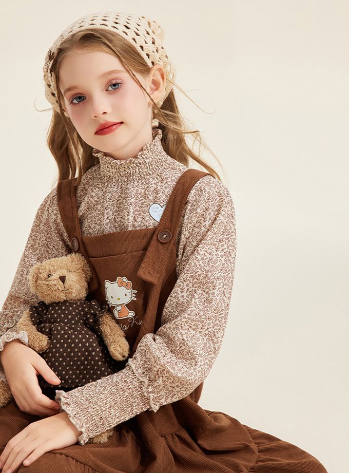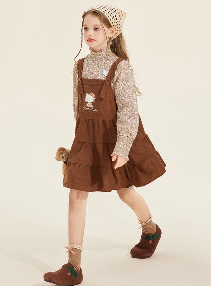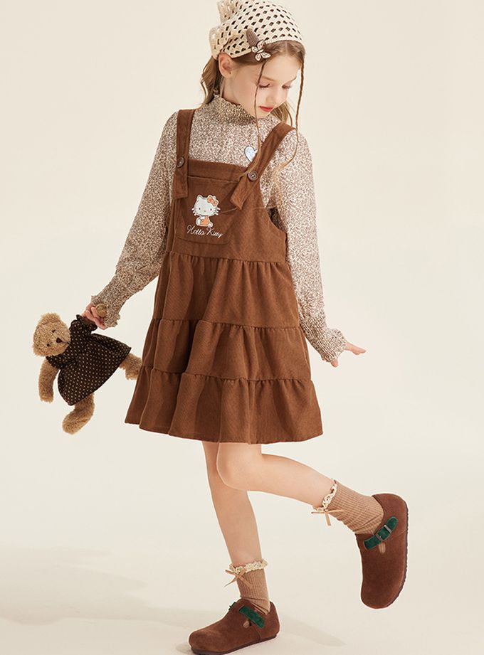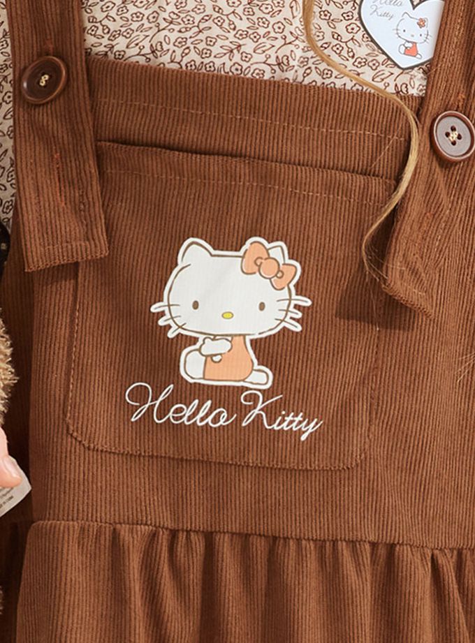 燈芯絨蛋糕吊帶洋裝(附內搭)-卡通人物Hello Kitty-棕色