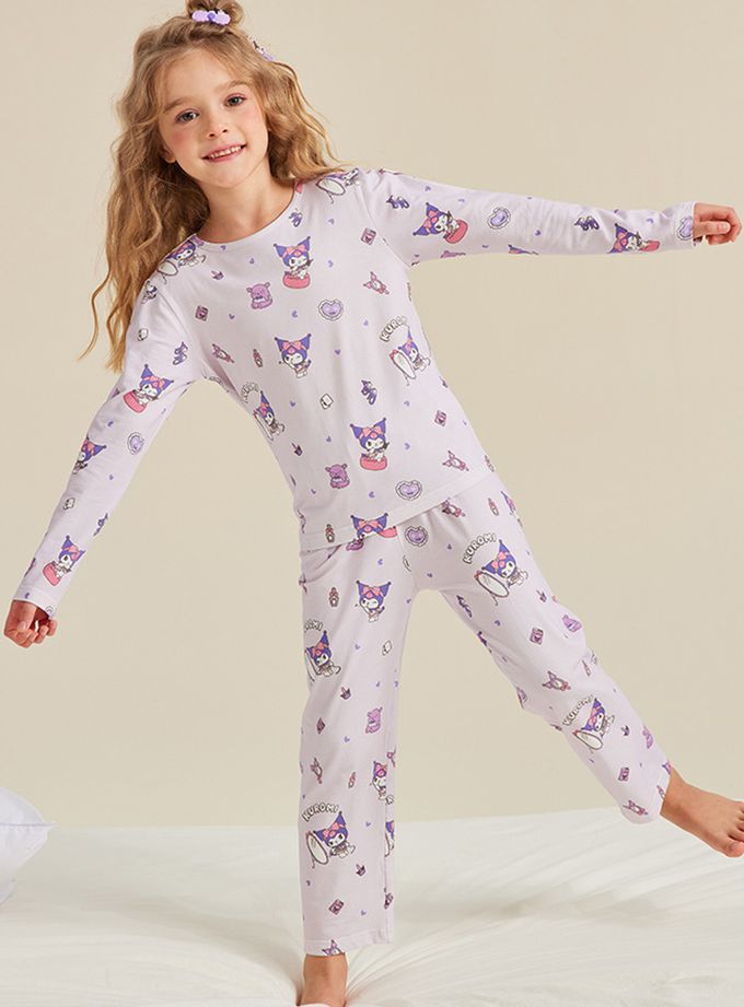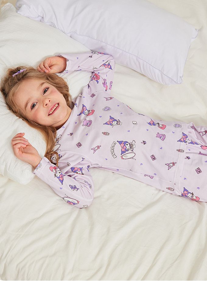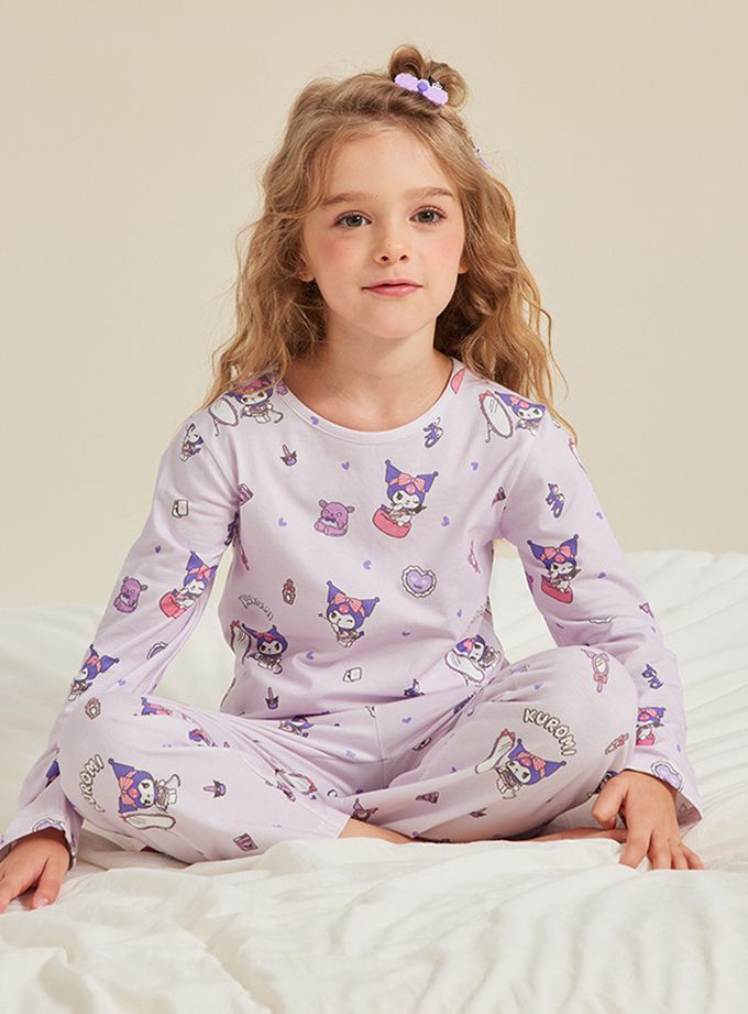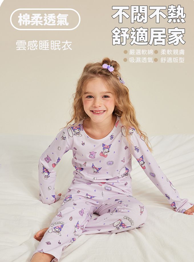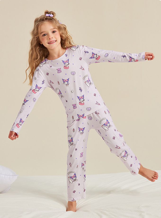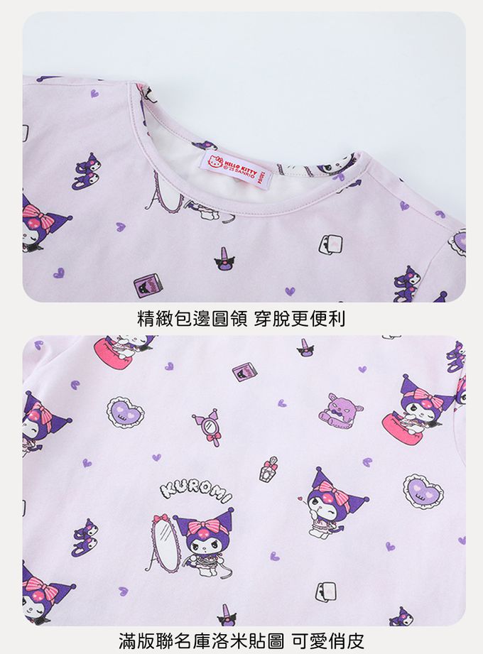 雲感透氣滿版印花家居服套裝-卡通人物酷洛米-紫色
