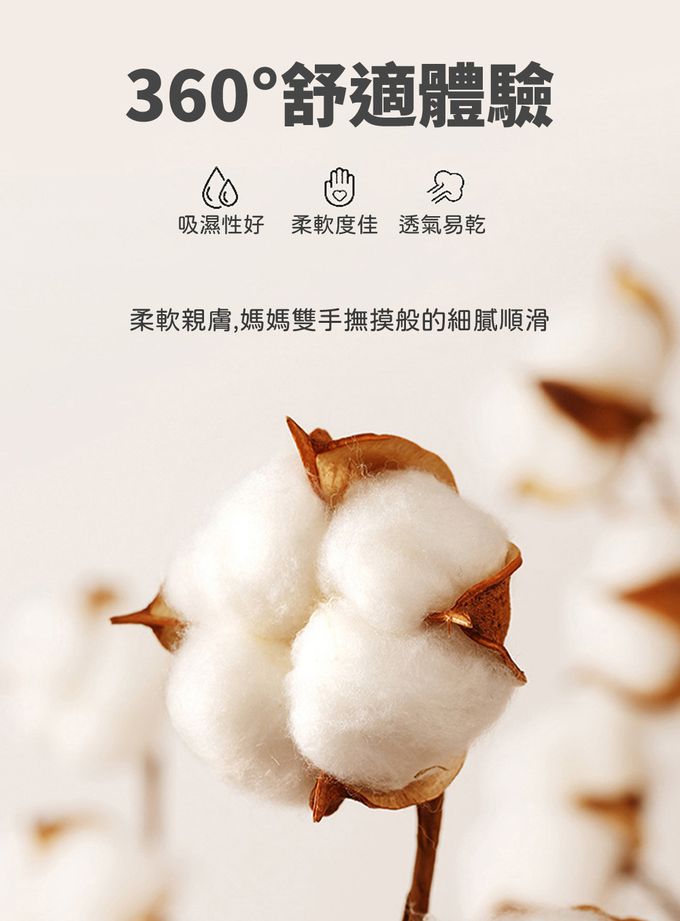 -新生兒親膚衣物(嬰幼兒包巾與背巾、包屁衣、學習褲、紗布衣等)。