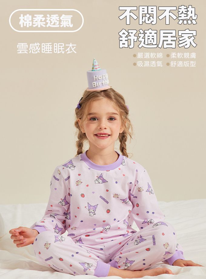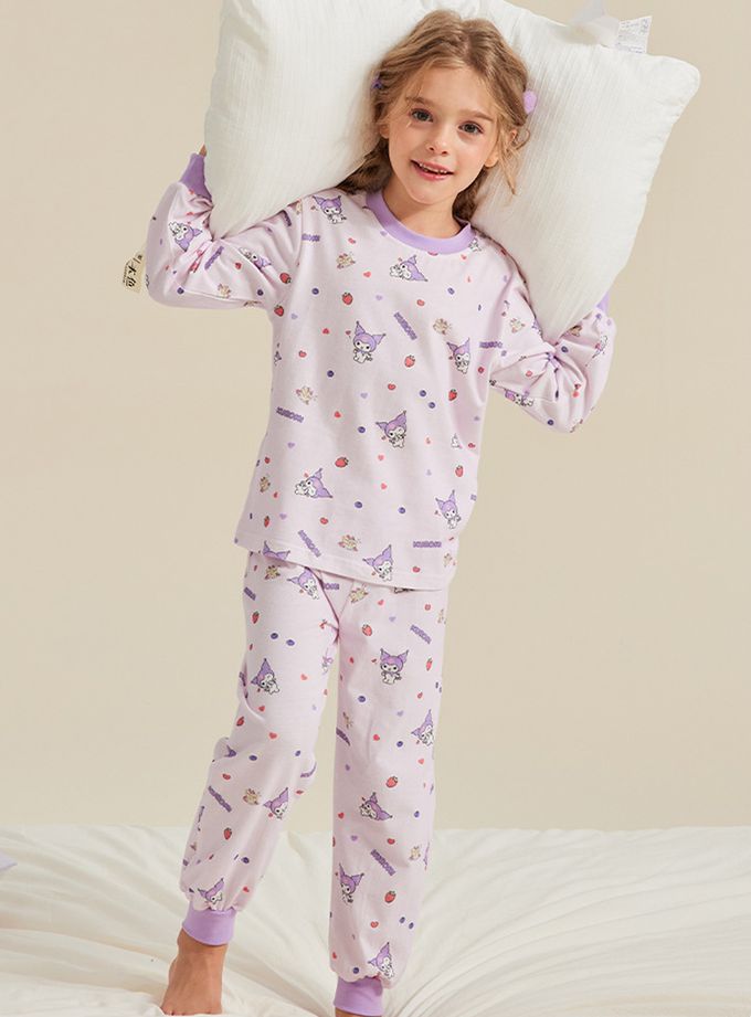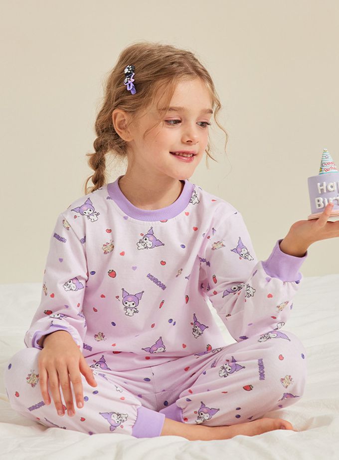 雲感透氣拼色縮口家居服套裝-卡通人物酷洛米-紫色