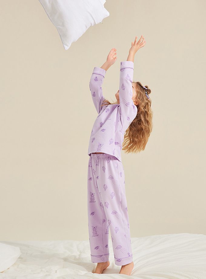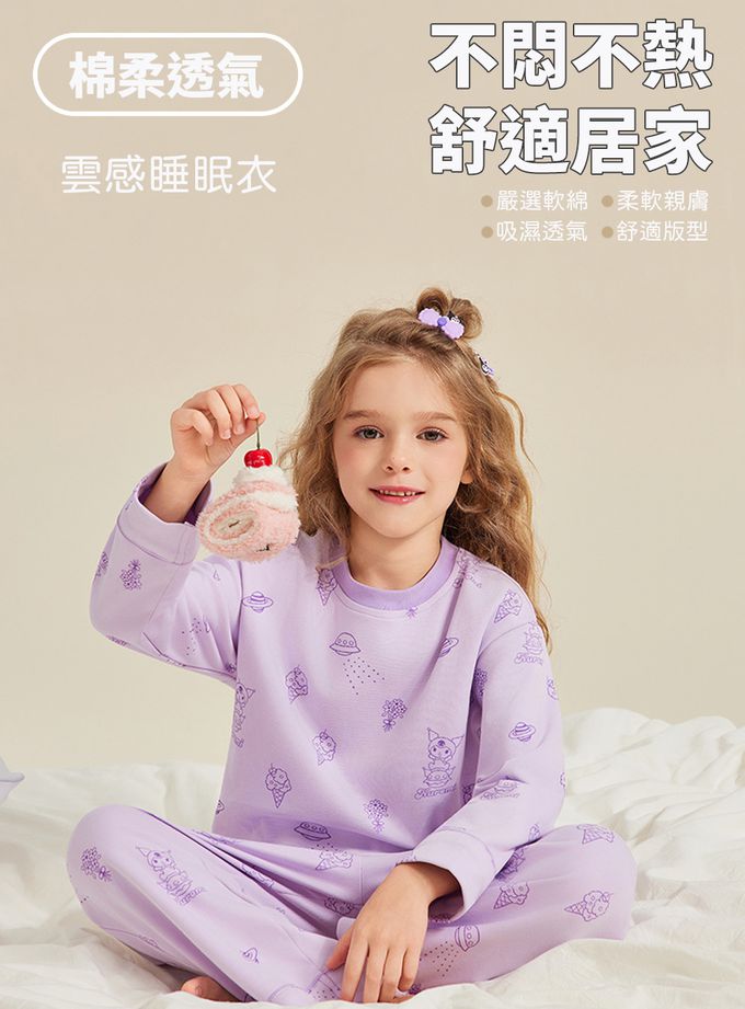 雲感透氣純棉家居服套裝-卡通人物酷洛米-紫色