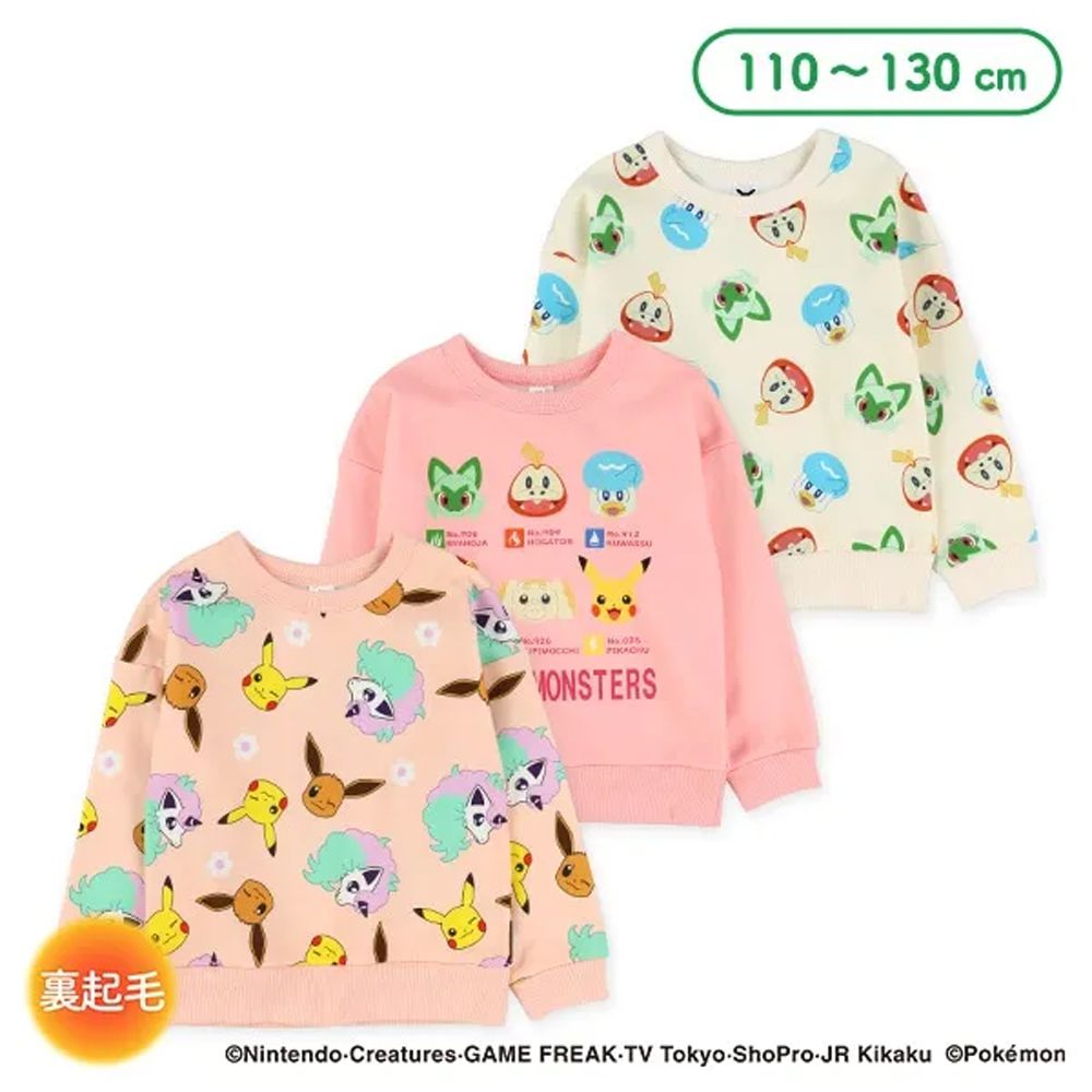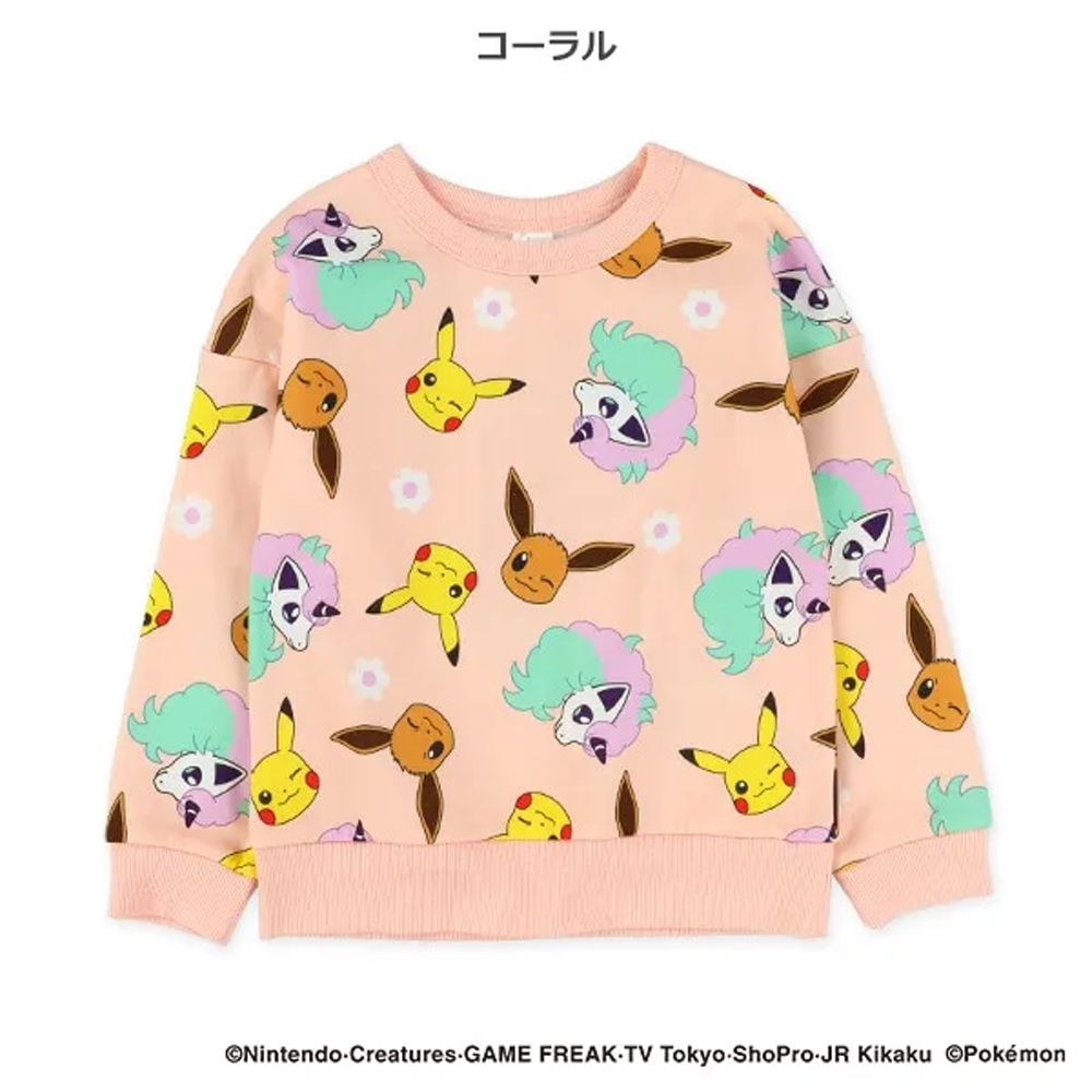日本西松屋 - 限量聯名 裏起毛保暖長袖上衣-卡通人物寶可夢-粉橘