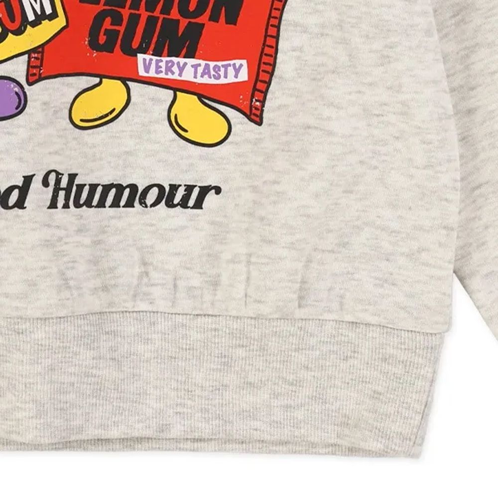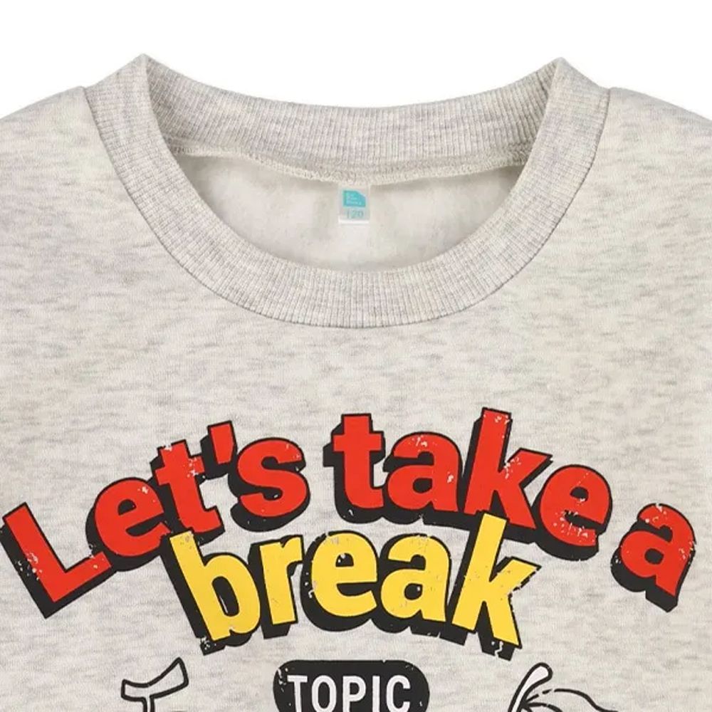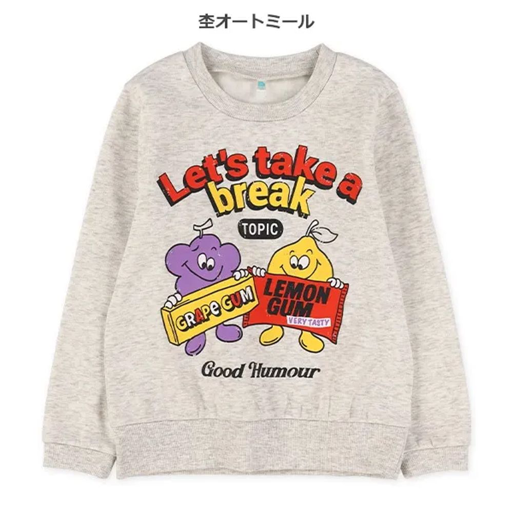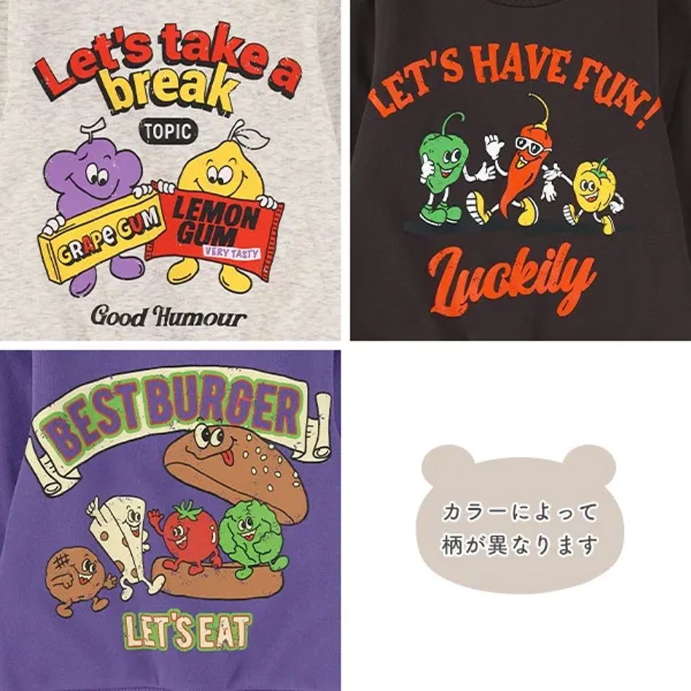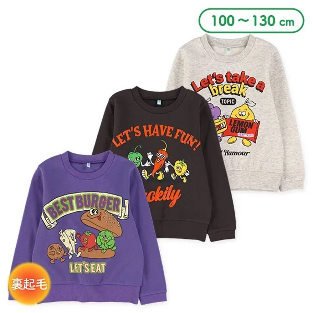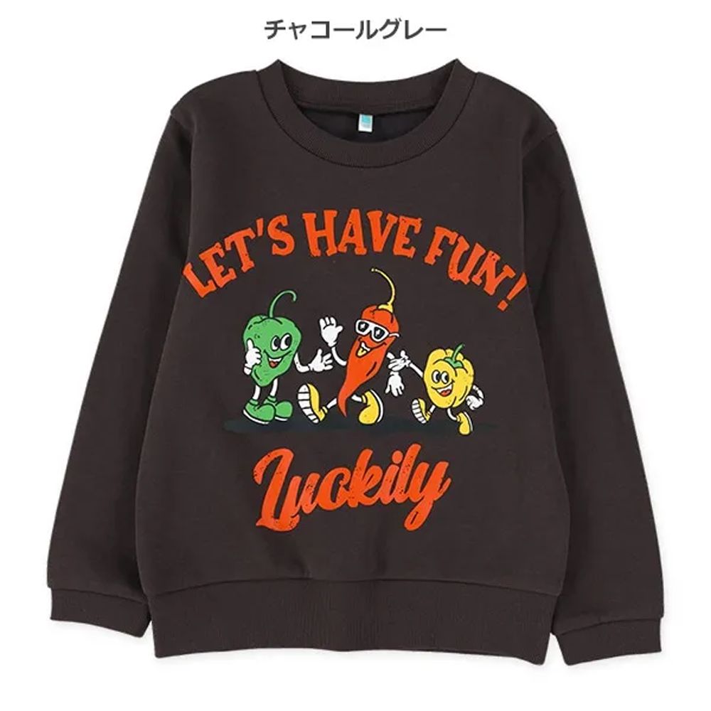 日本西松屋 - 裏起毛 幽默美食保暖長袖上衣-辣椒好朋友-炭灰
