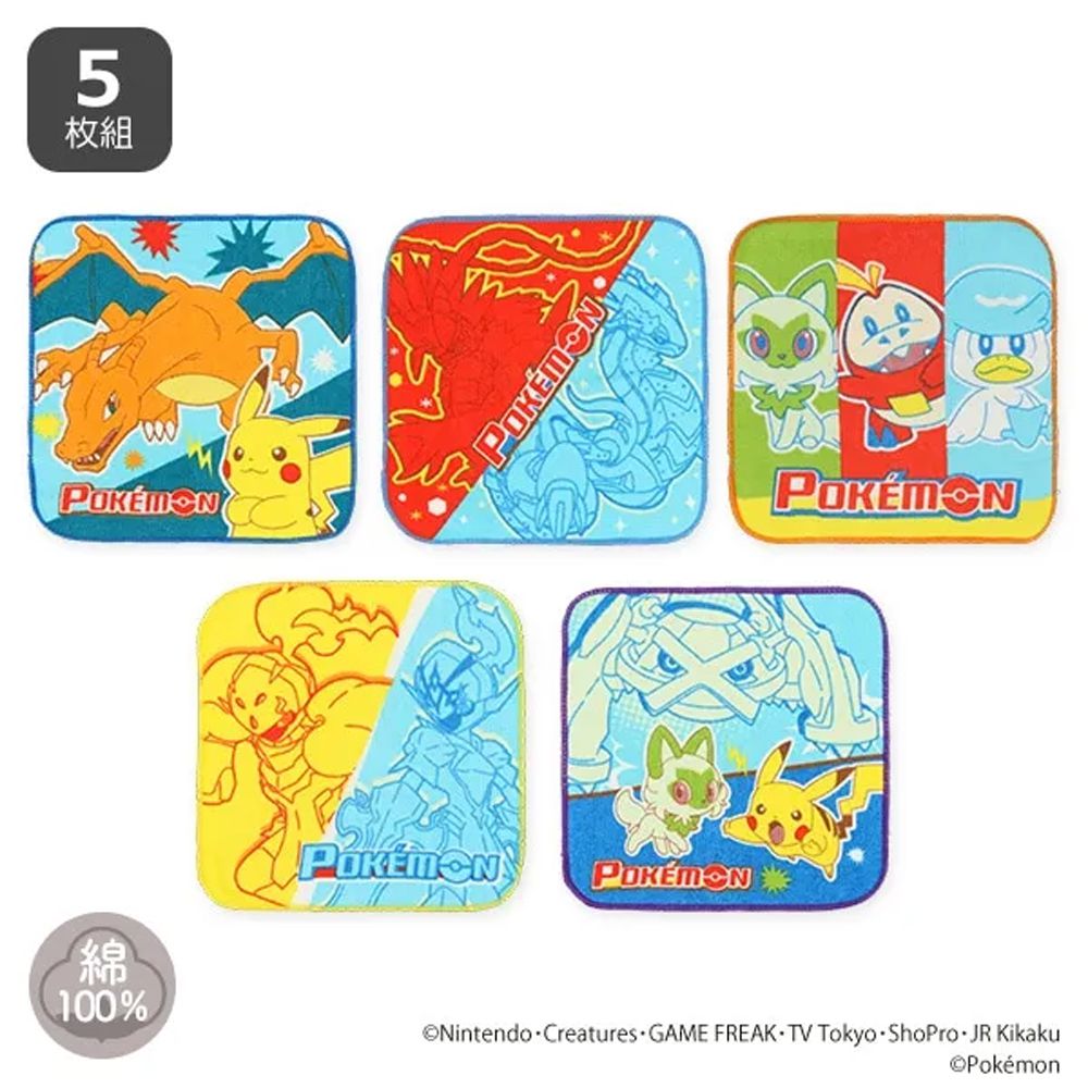 日本西松屋 - 純棉上學擦手巾/手帕(5入組)-卡通人物寶可夢-決鬥係 (16×16cm)