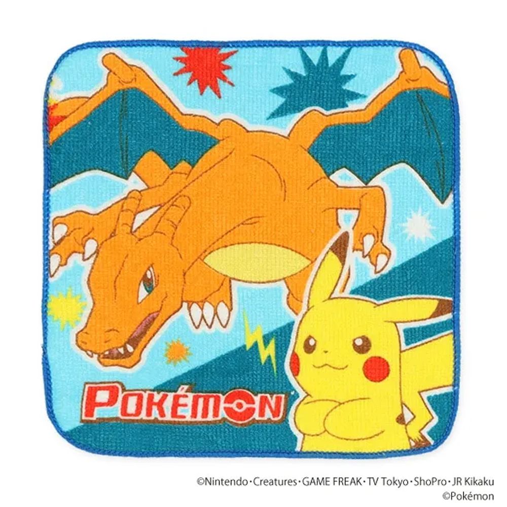 日本西松屋 - 純棉上學擦手巾/手帕(5入組)-卡通人物寶可夢-水藍/紅系 (16×16cm)