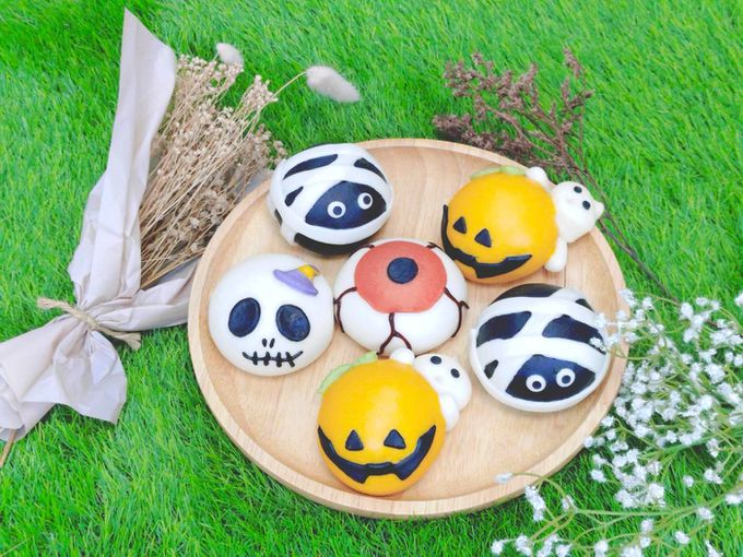 ◉內容物:南瓜幽靈(紅豆)X2、繃帶人(甜綠豆)X2、眼球(奶皇)X1、骷顱頭(芋泥)X1
