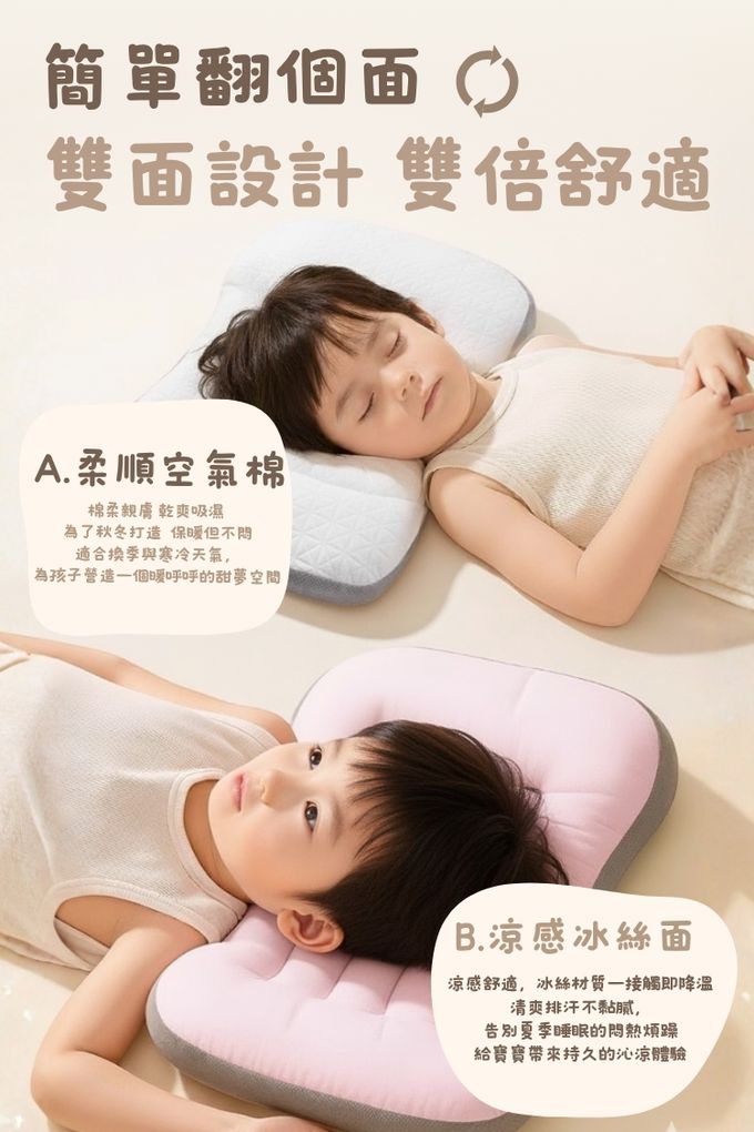 兒童雙面太空分區枕-莫蘭迪粉 (F)
