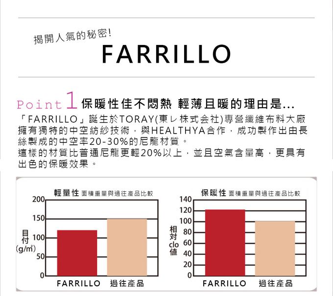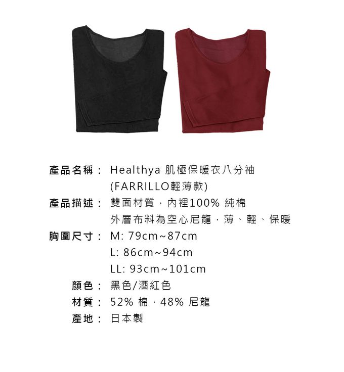 品名:日本製 肌極 八分袖保暖衣(FARRILLO輕薄款)