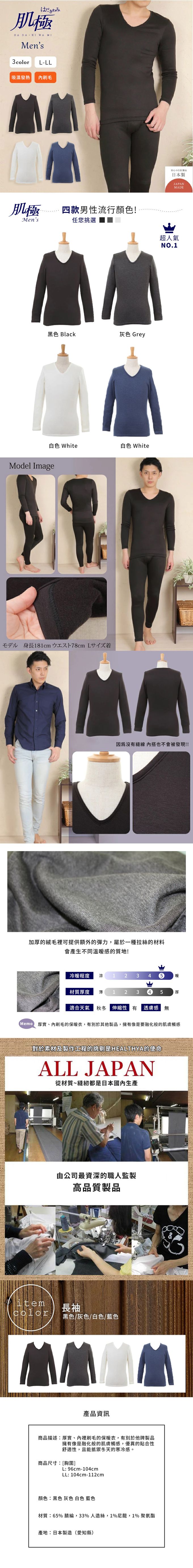 品名:日本製 肌極保暖衣V領-男
