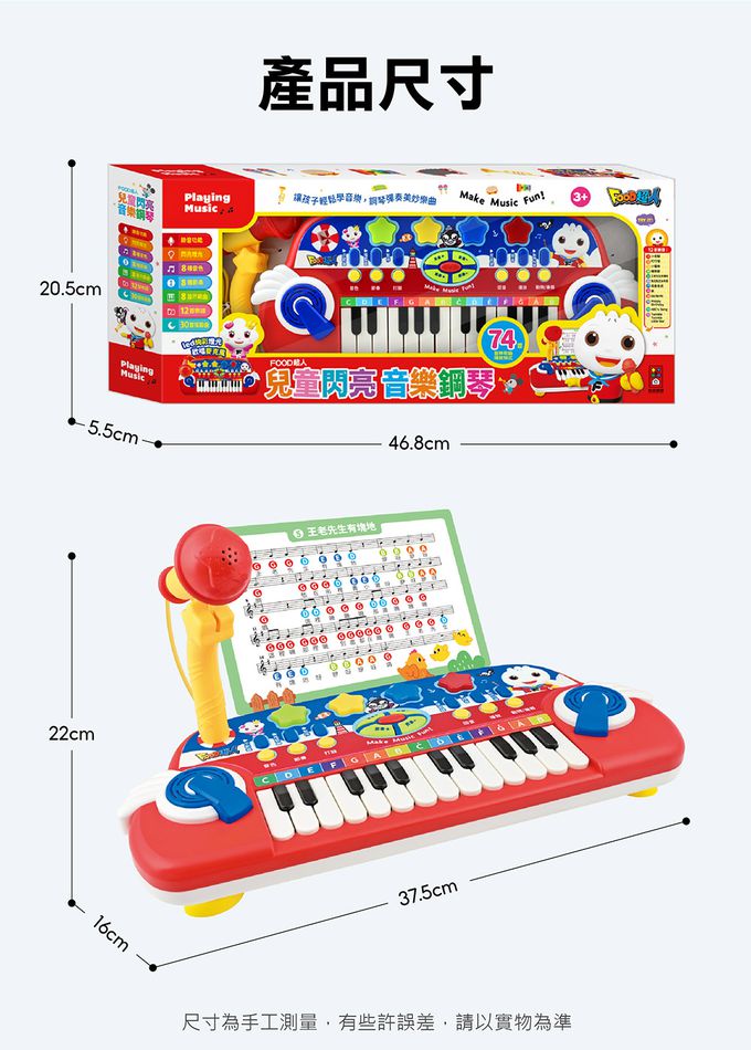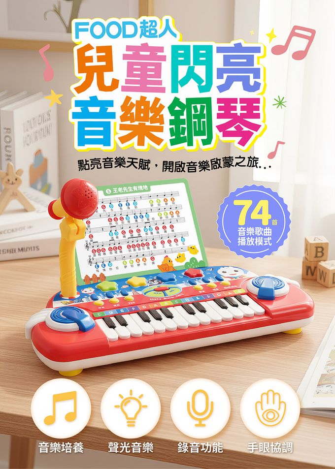 品名:兒童閃亮音樂鋼琴-FOOD超人