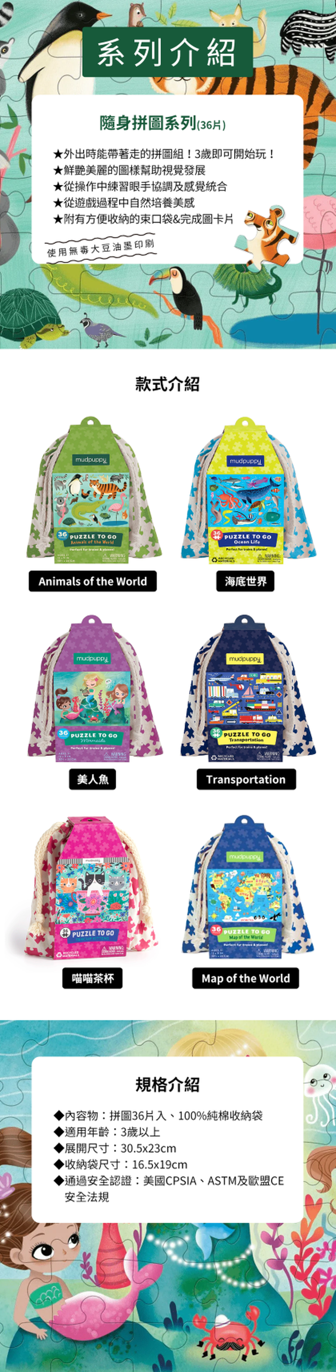 美國 mudpuppy - 隨身拼圖-美人魚36片 (11.5x4.3x18)