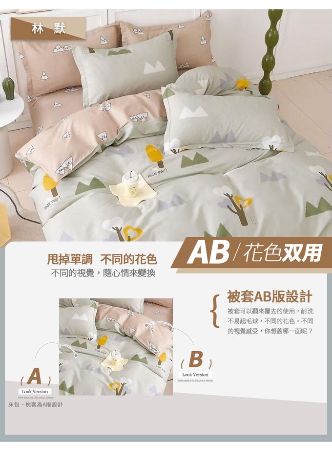 台灣製 極致純棉寢具組-林默-雙人四件式床包被套組
