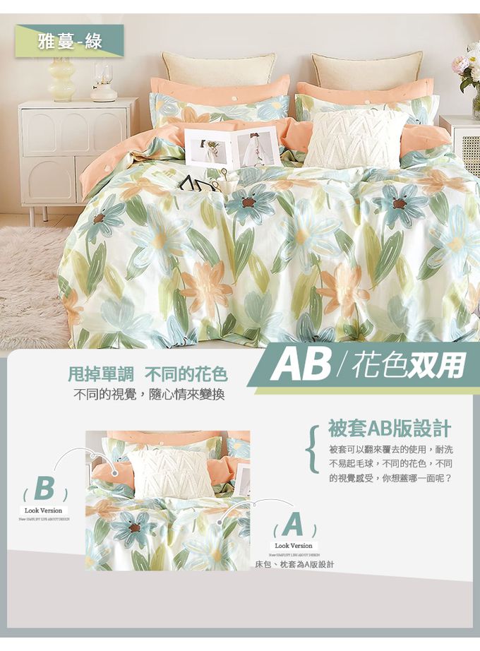 台灣製 極致純棉寢具組-雅蔓-綠-單人兩件式床包組