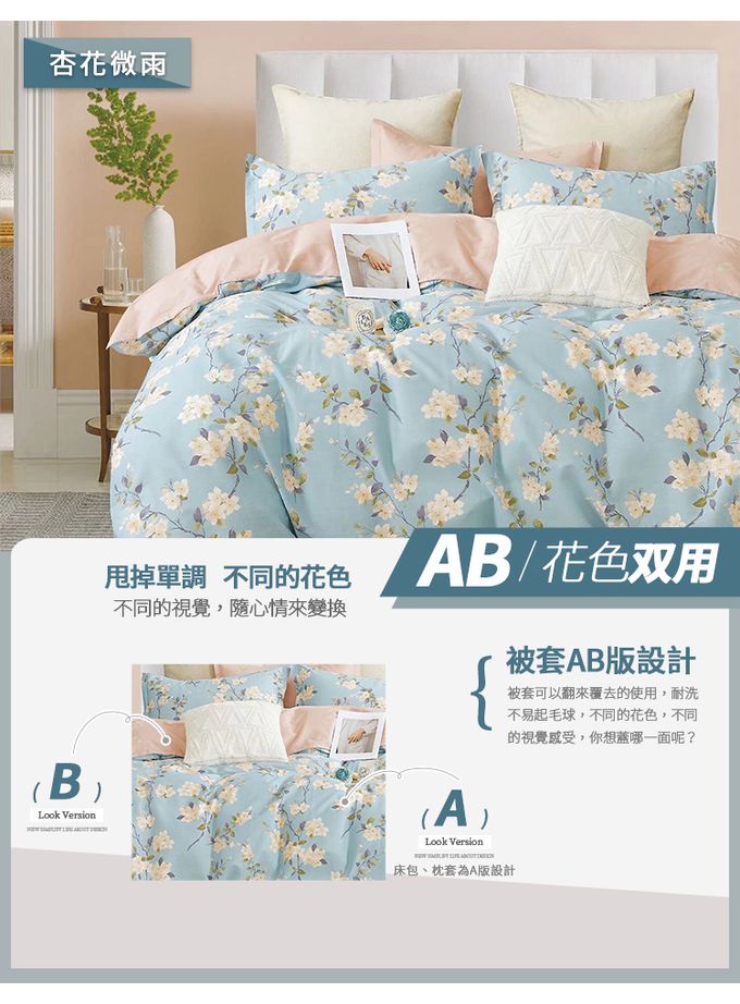 台灣製 極致純棉寢具組-杏花微雨-雙人三件式床包組