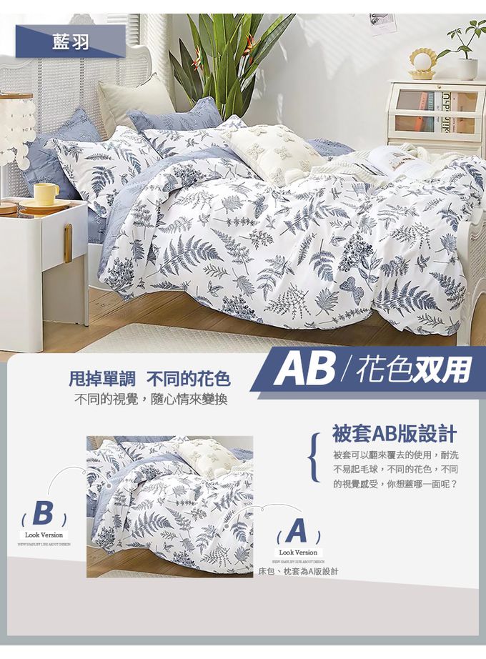 台灣製 極致純棉寢具組-藍羽-雙人三件式床包組