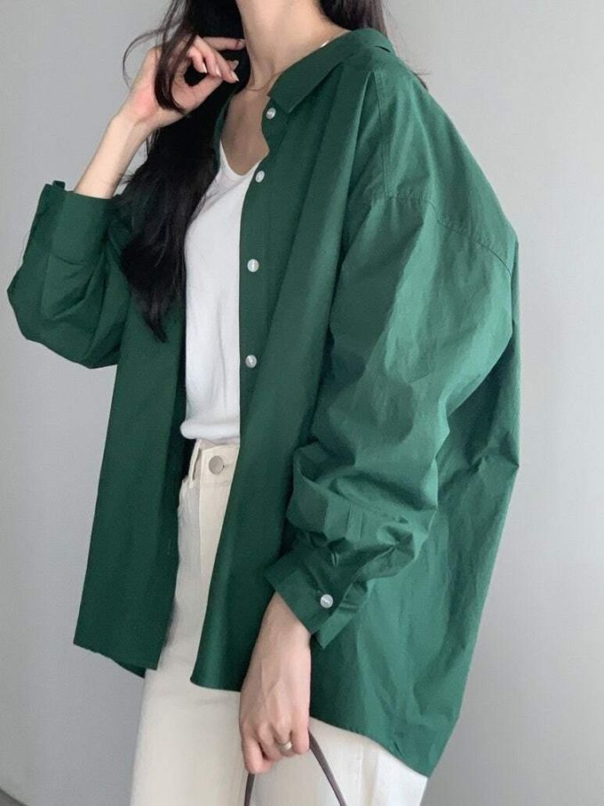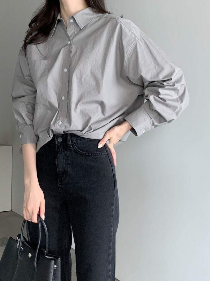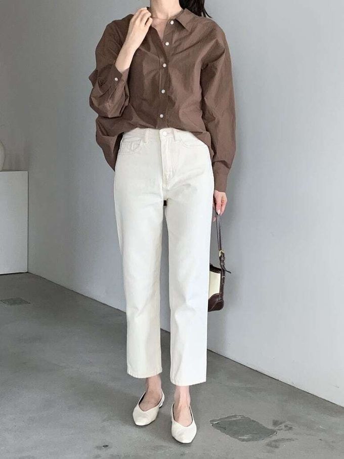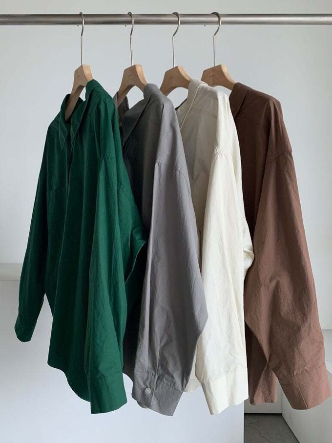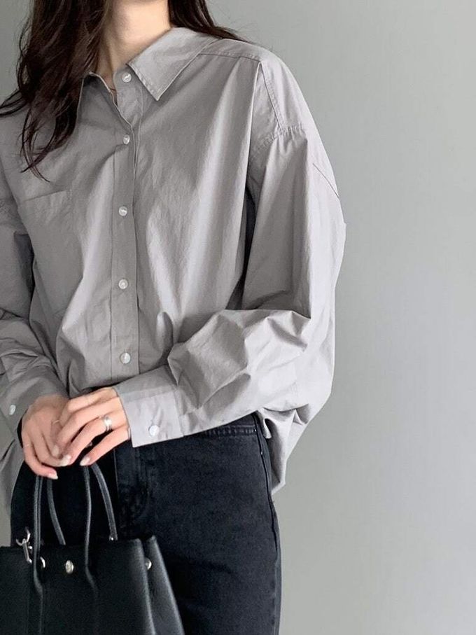 韓國女裝連線 - 簡約質感後背抓褶長袖襯衫-咖啡 (FREE)