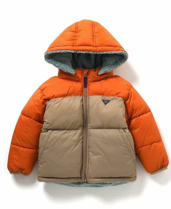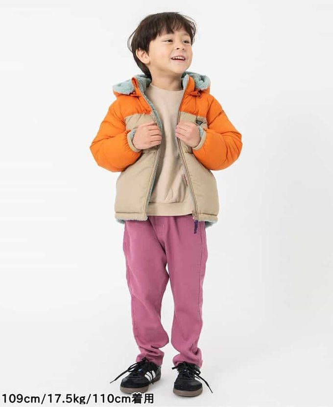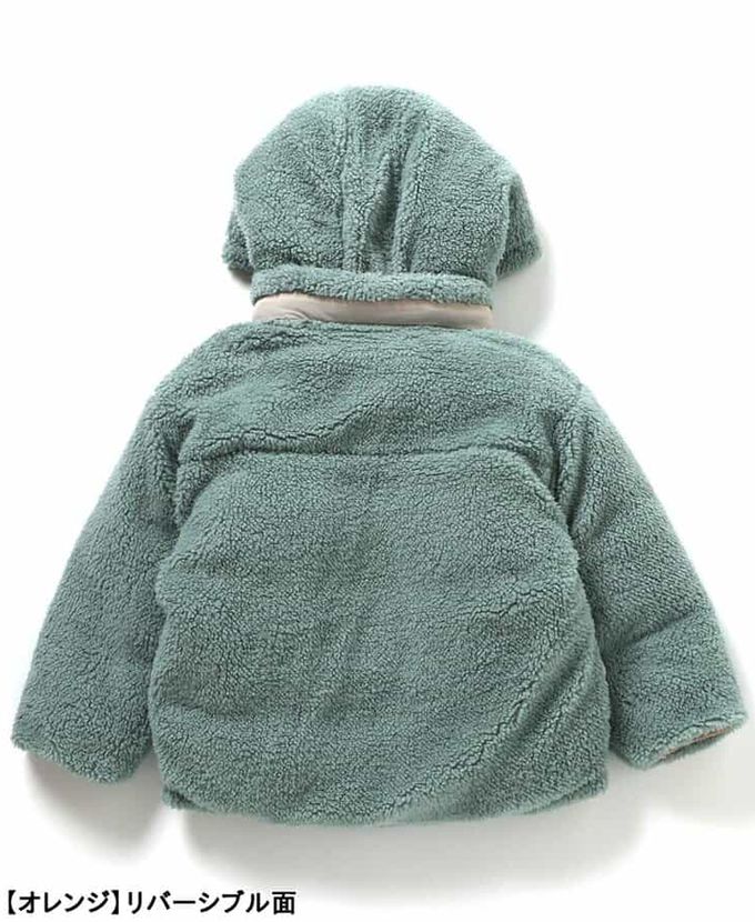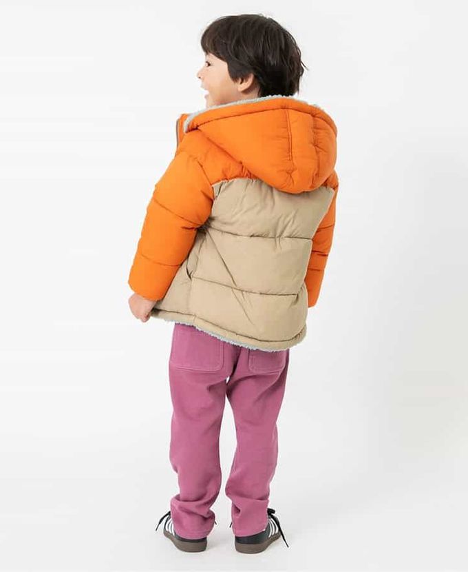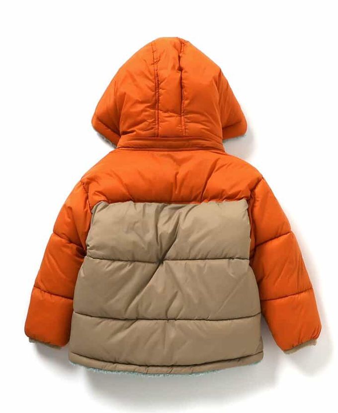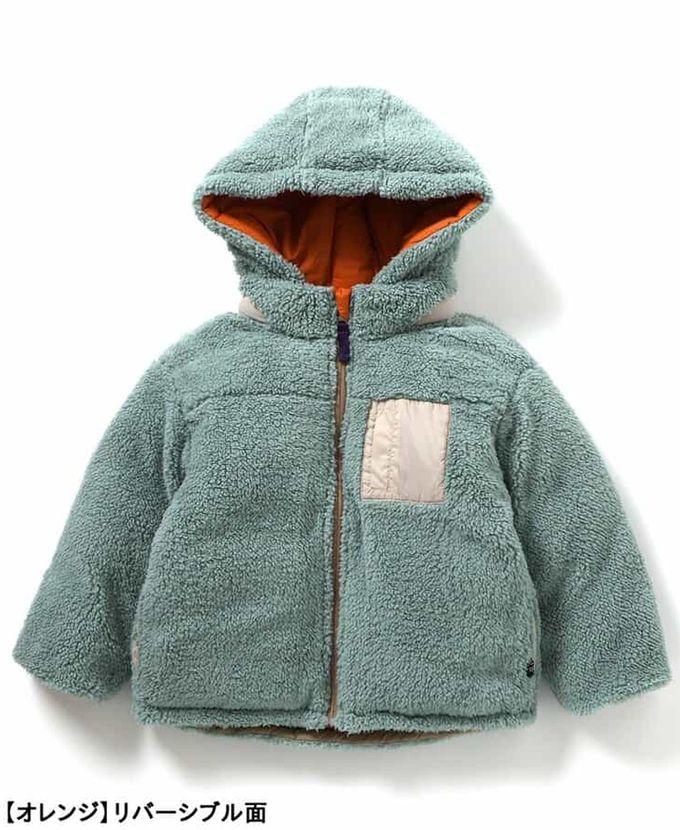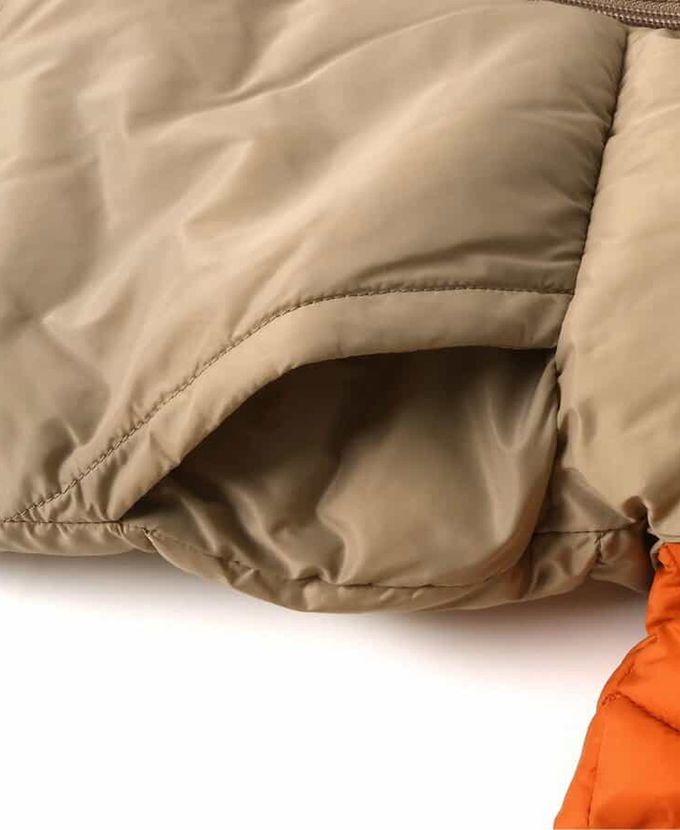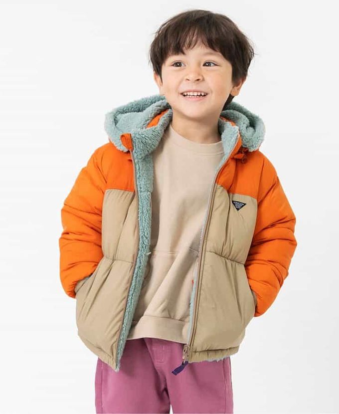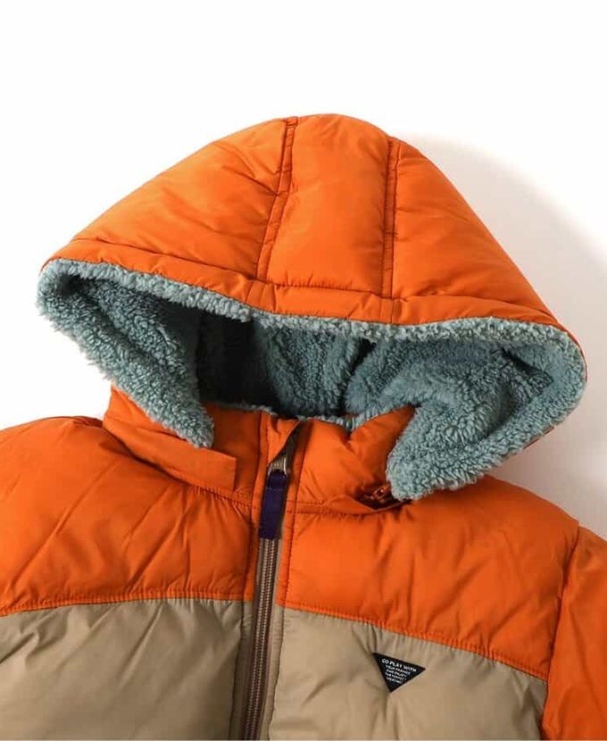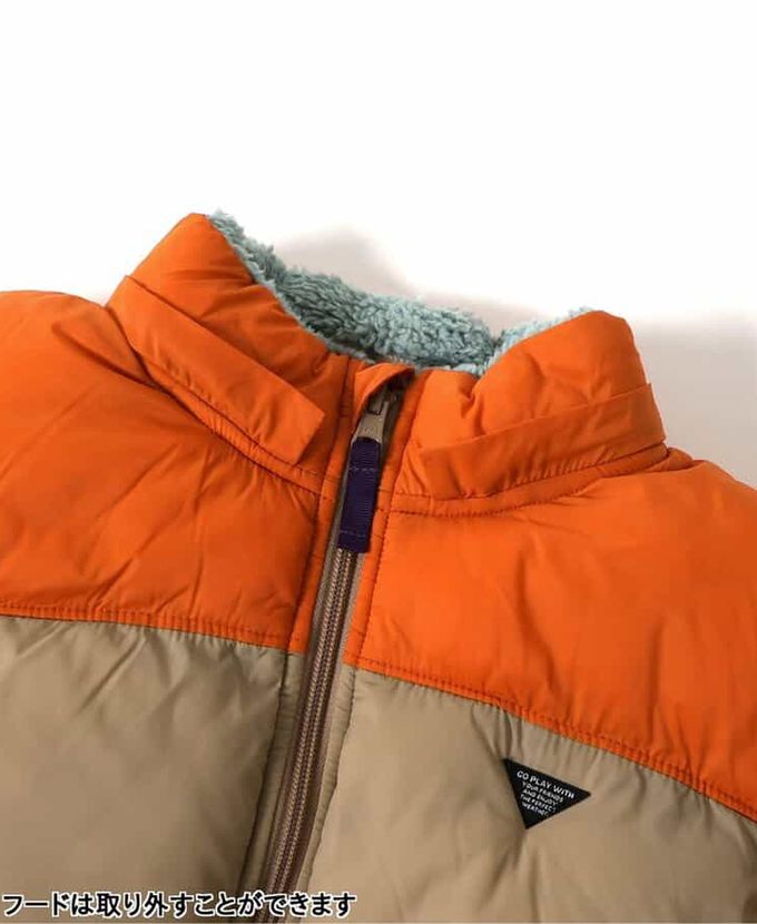 日本 BREEZE - 2WAY雙面穿 柔軟毛毛科技羽絨外套(帽可拆)-橘X卡其