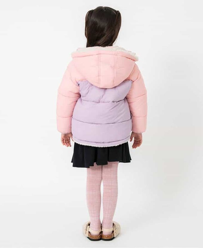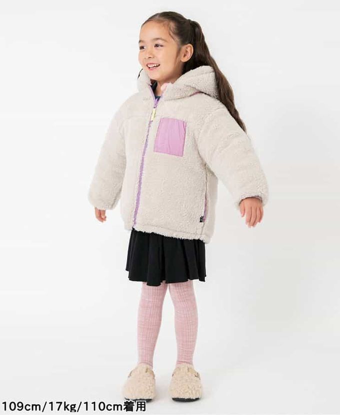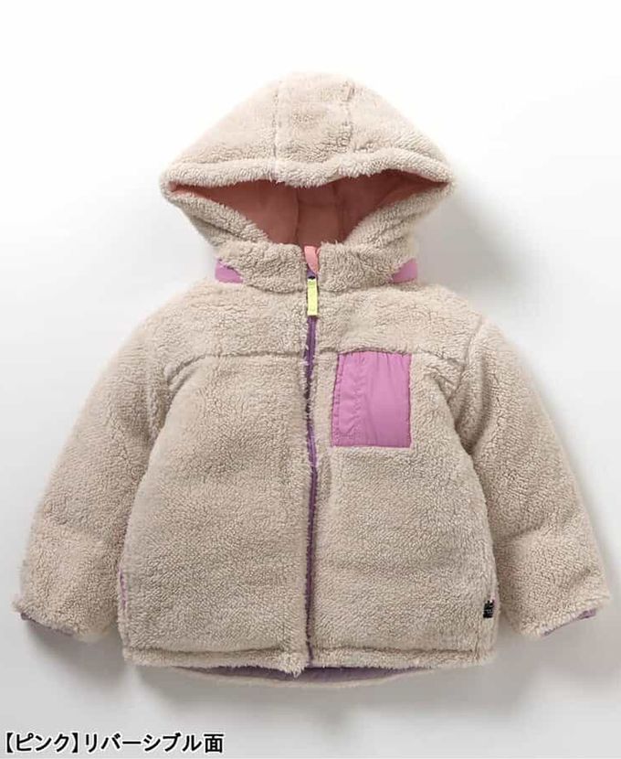 日本 BREEZE - 2WAY雙面穿 柔軟毛毛科技羽絨外套(帽可拆)-粉紅X紫