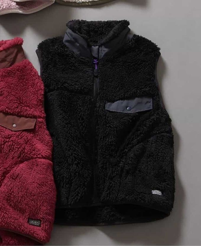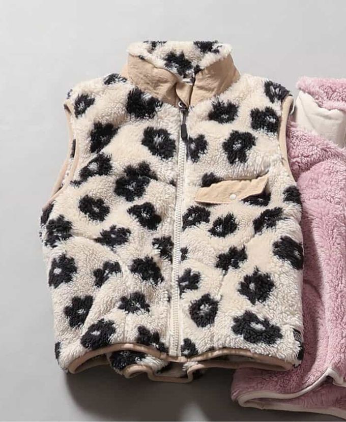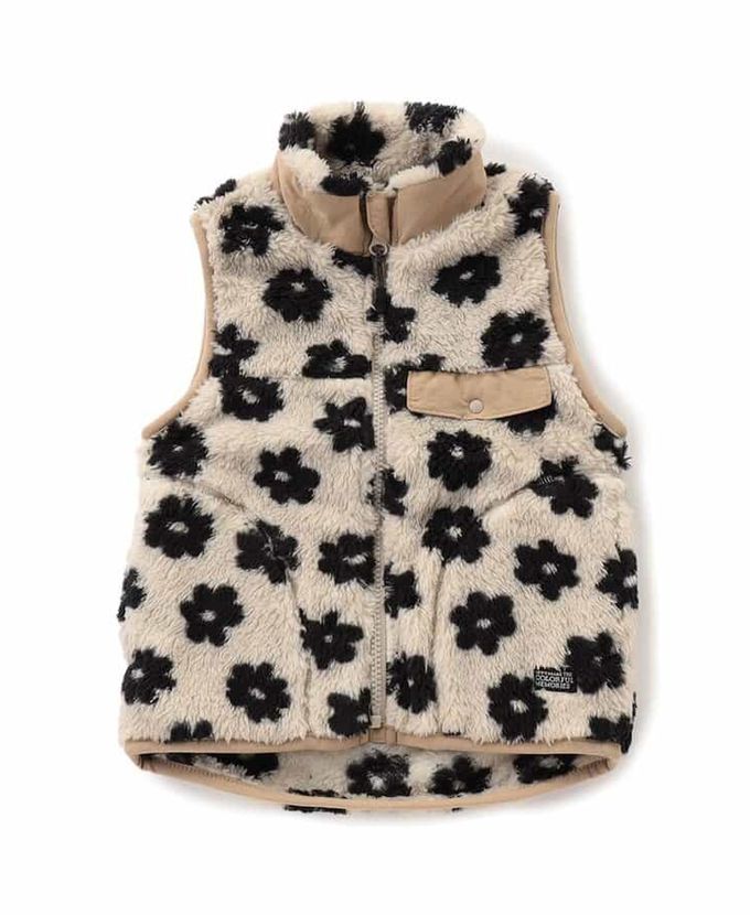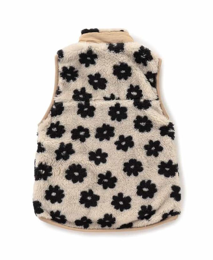日本 BREEZE - 百搭柔軟絨毛背心-花朵-米白X黑