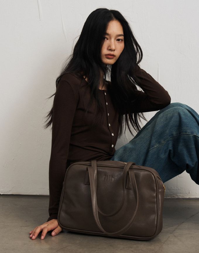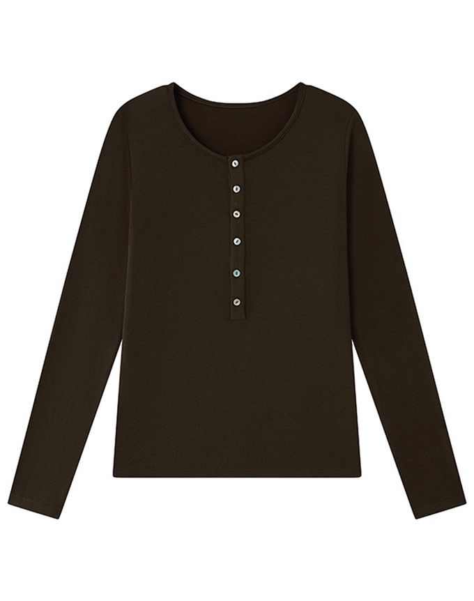 4.4%羊毛天絲半開釦長袖上衣-栗咖