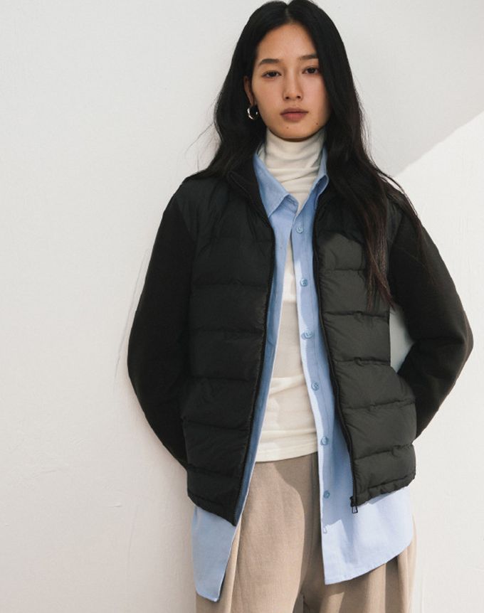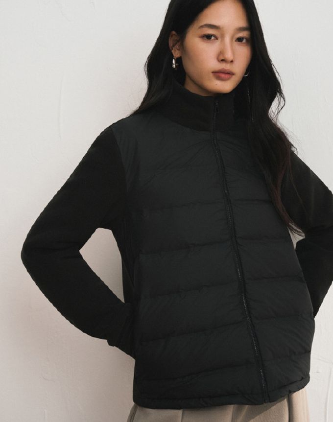 90%羽絨拼接搖粒絨外套-顯瘦黑