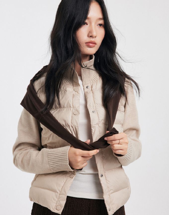 品名:百搭針織拼接鋪棉外套
