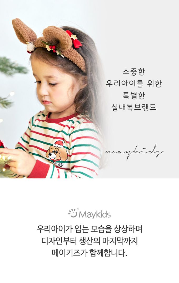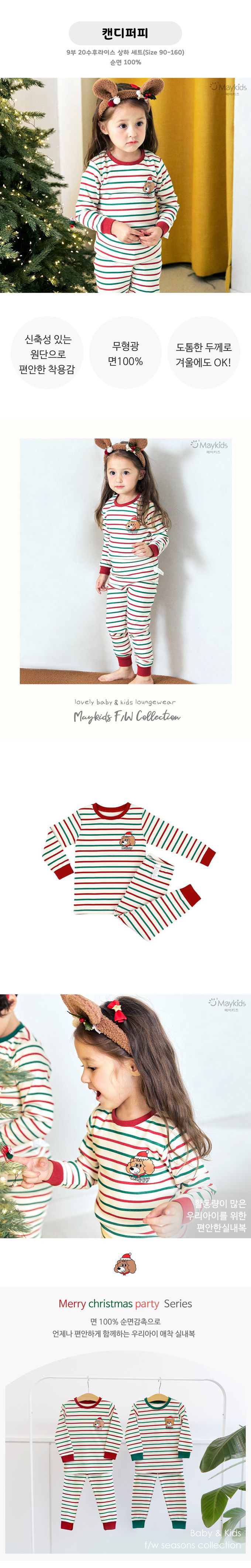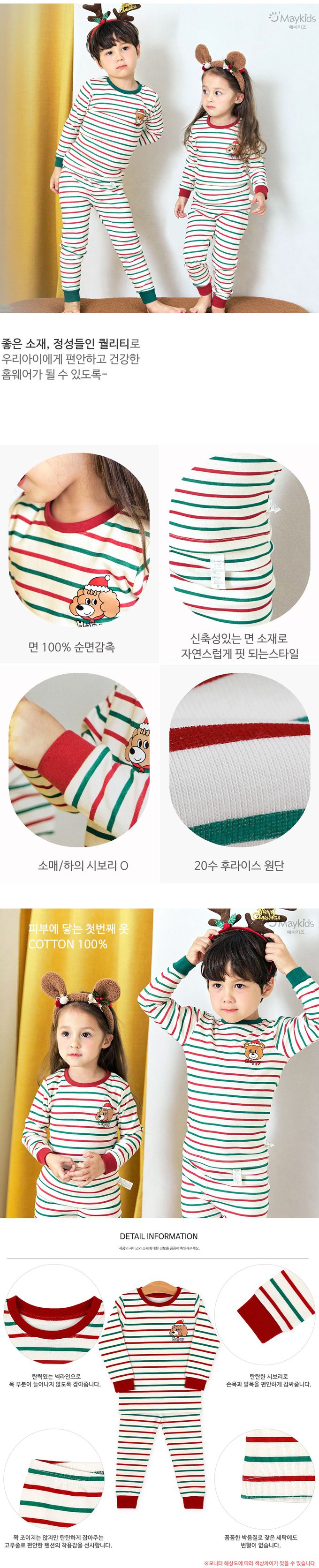 韓國 Maykids - 親膚舒絨棉彈性長袖家居服-聖誕條紋狗狗