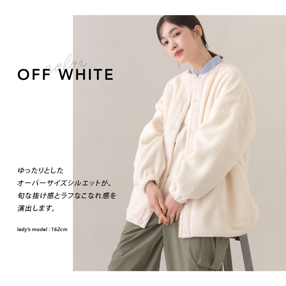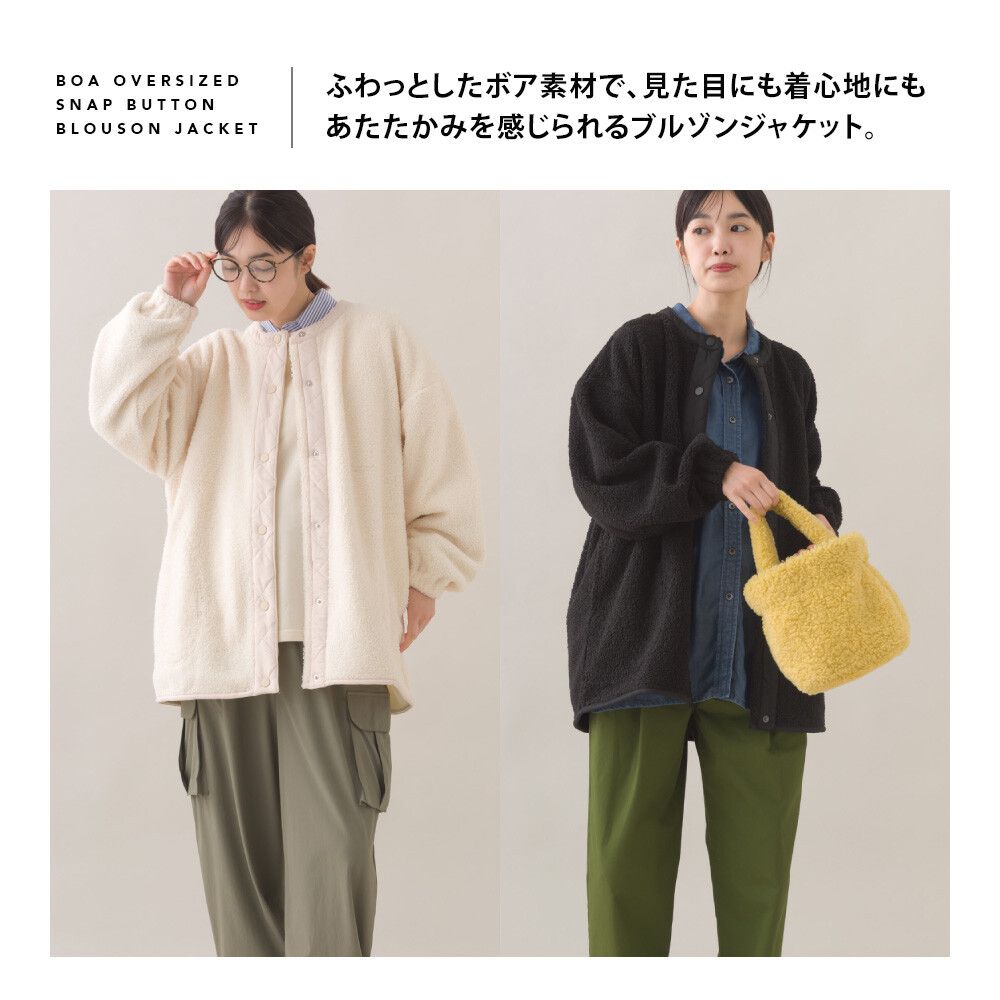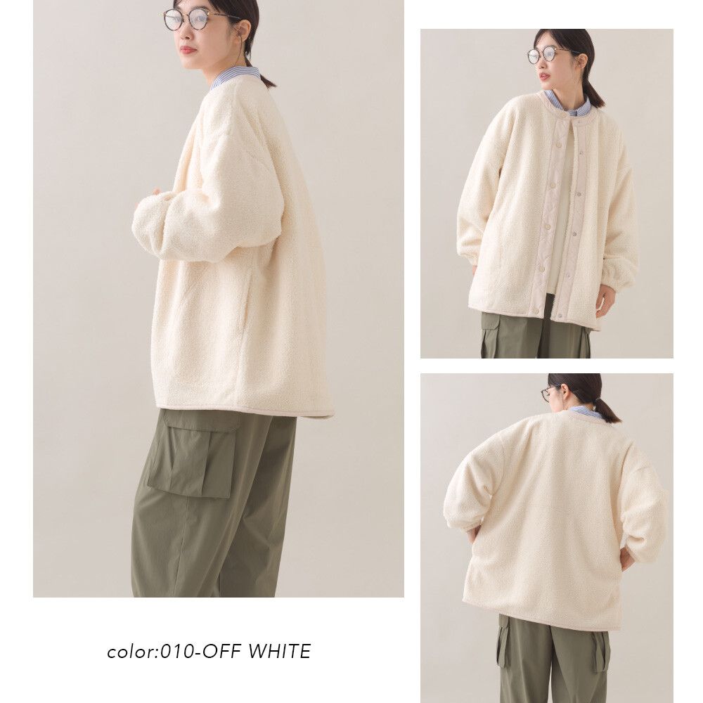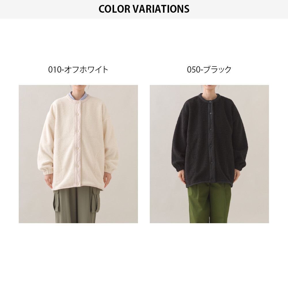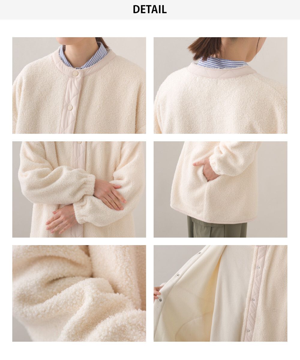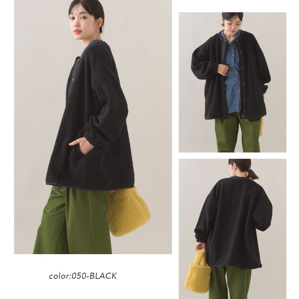 日本 OMNES - 溫柔短毛絨鈕扣無領保暖外套-黑