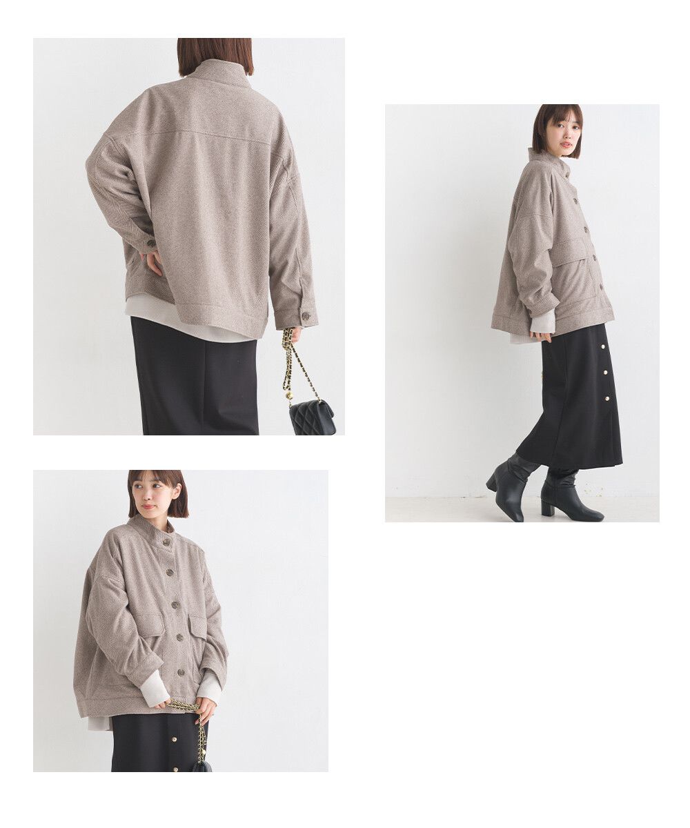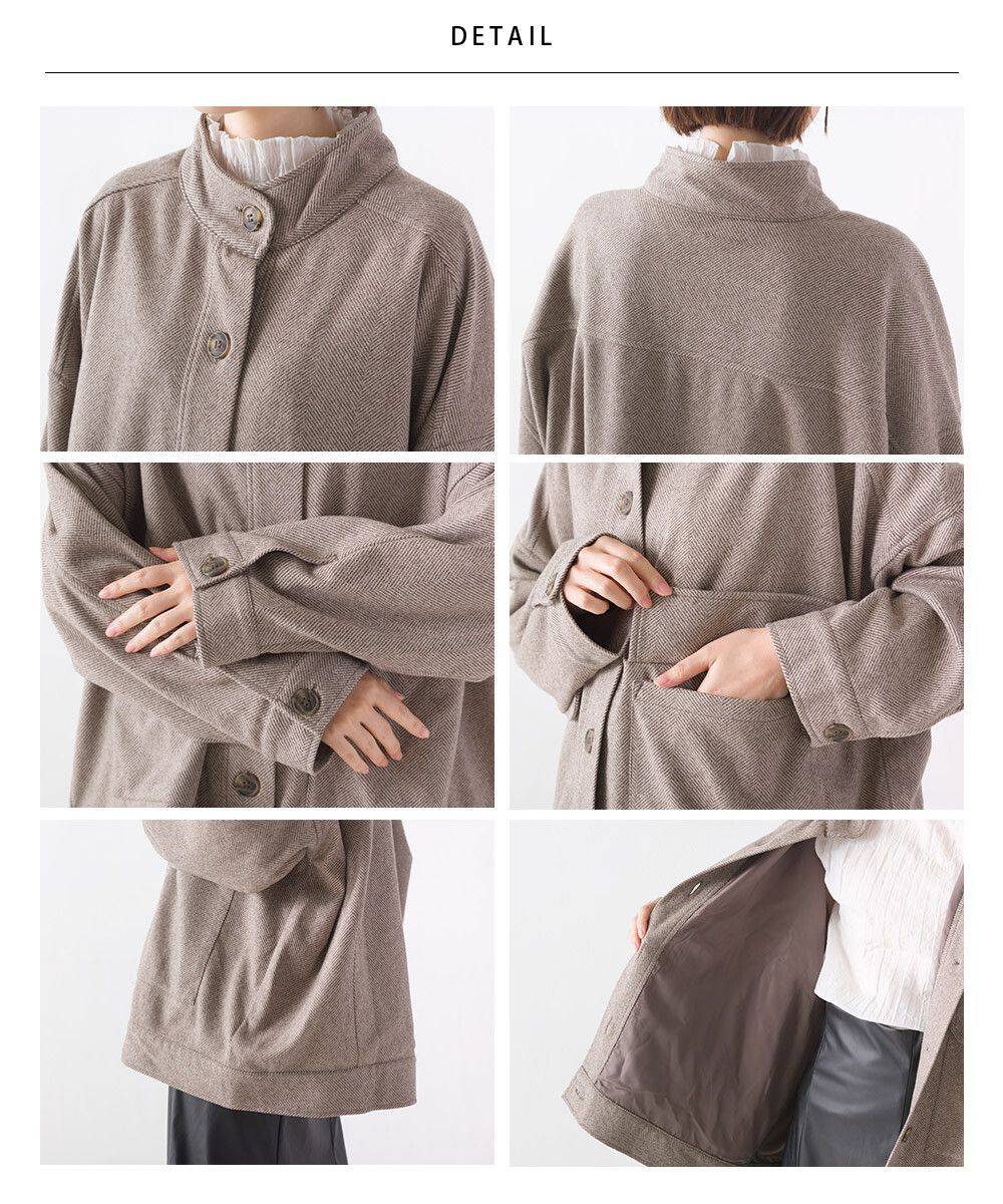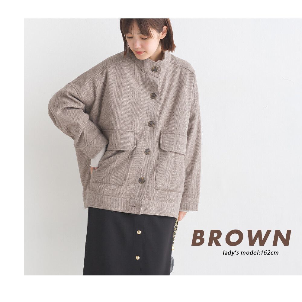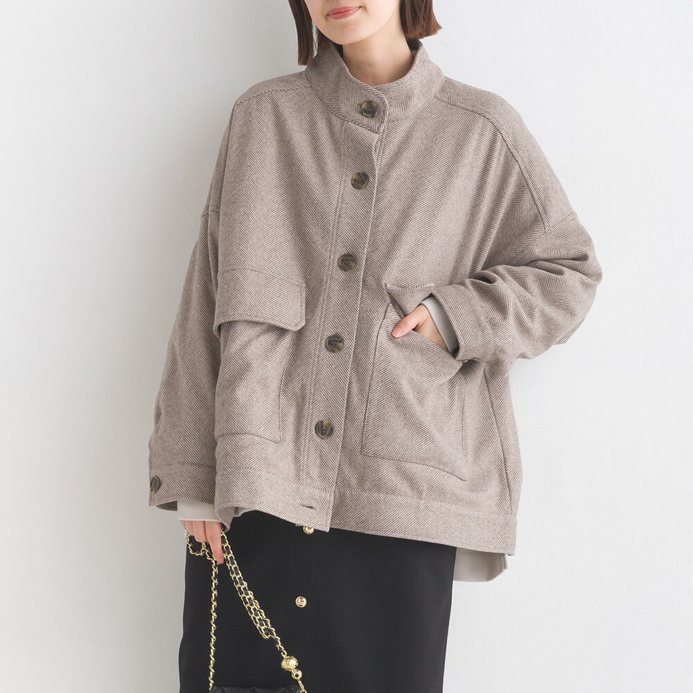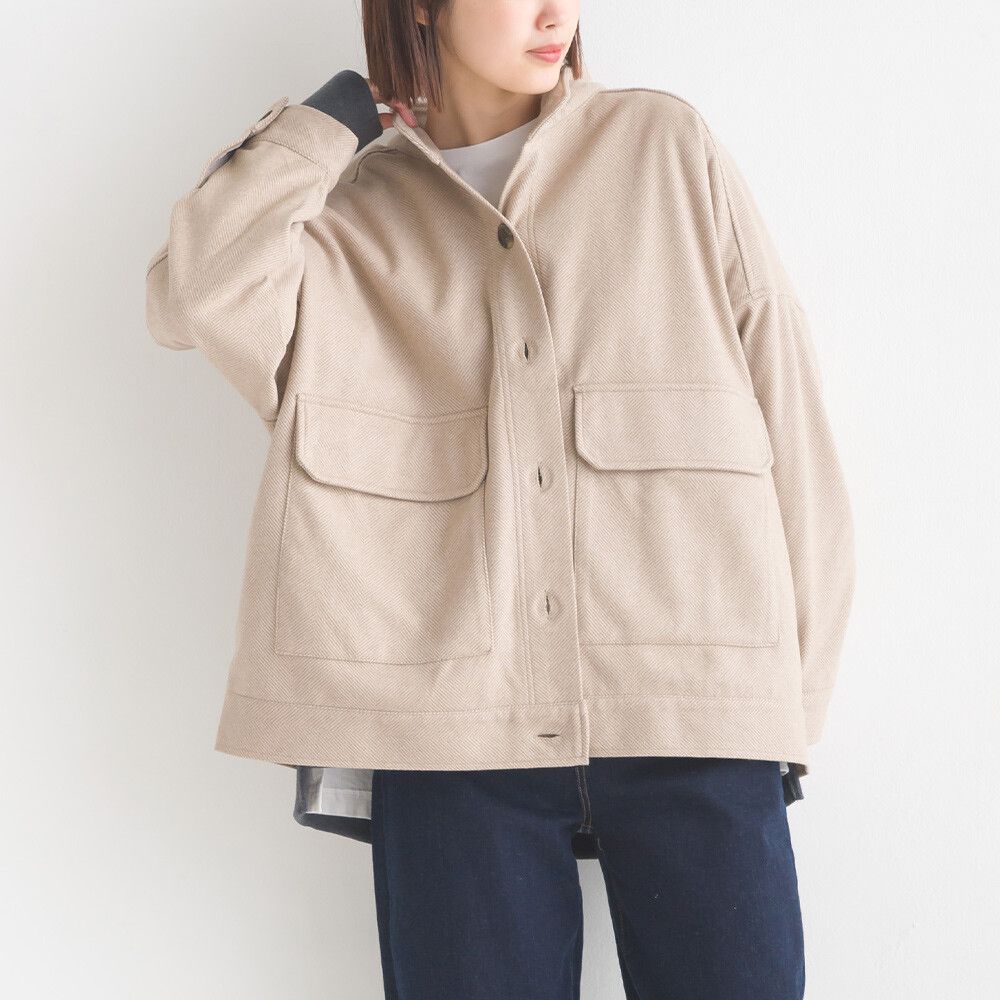 日本 OMNES - 人字紋休閒口袋俐落短版大衣外套-卡其