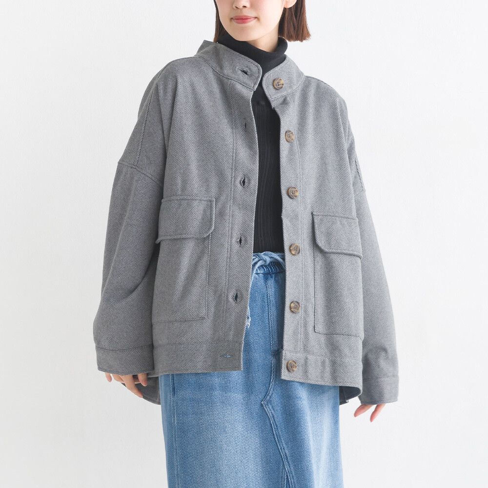 • 品名:人字紋休閒口袋俐落短版大衣外套