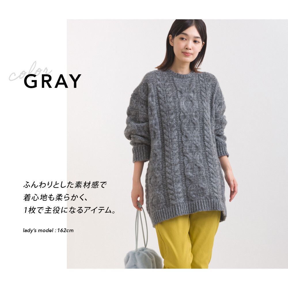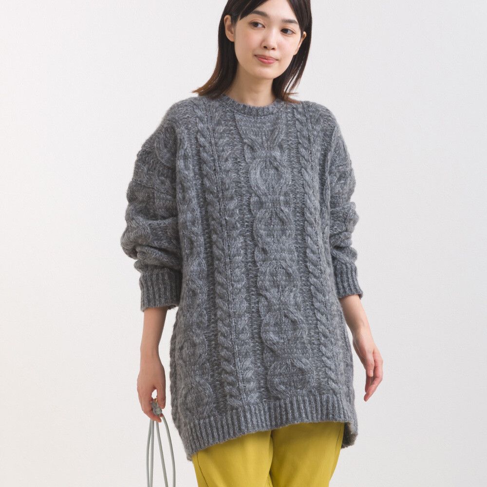 日本 OMNES - 季節感麻花編蓬鬆感針織上衣-深灰