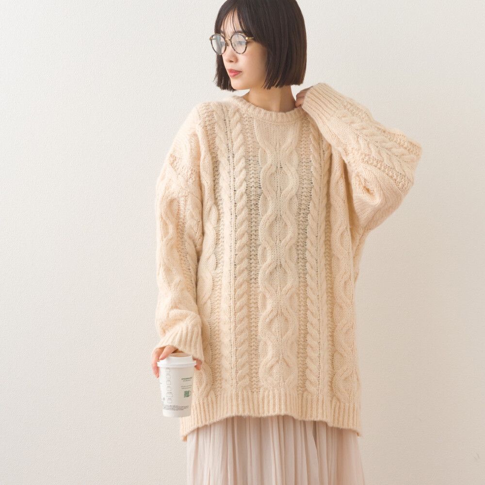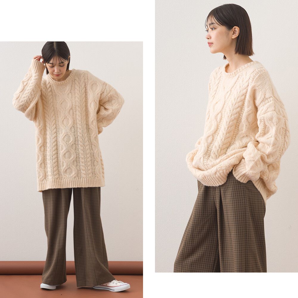 • 品名:季節感麻花編蓬鬆感針織上衣