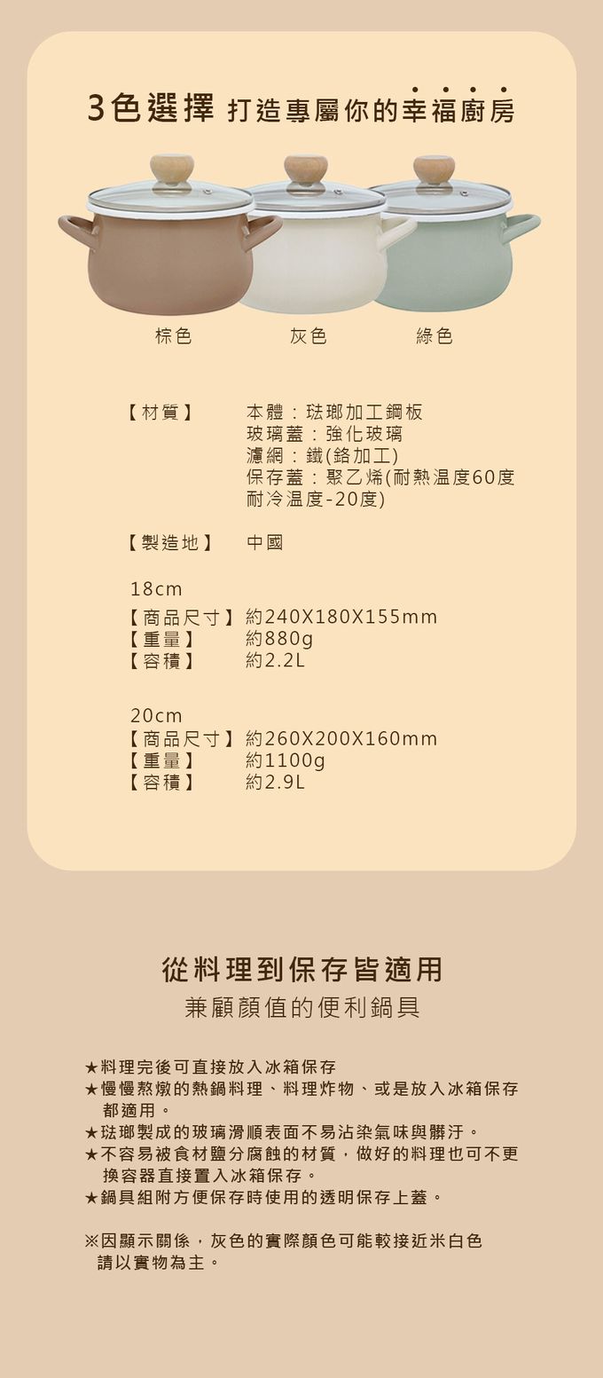 琺郎深鍋 20cm-附鍋蓋組-棕色