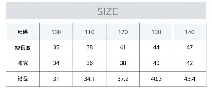 1. 尺寸表單位皆為公分(cm),實際尺寸會因布料彈性、水洗、測量起迄點等因素略有誤差。