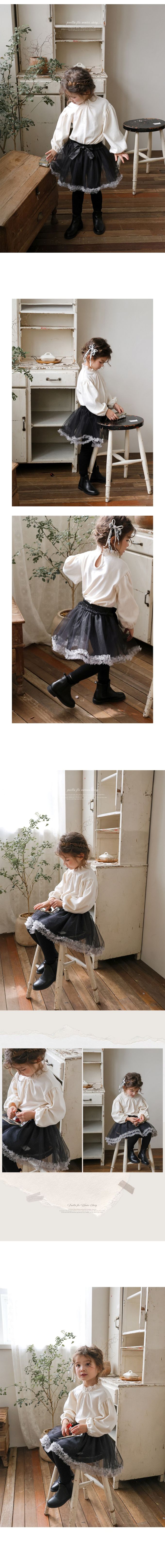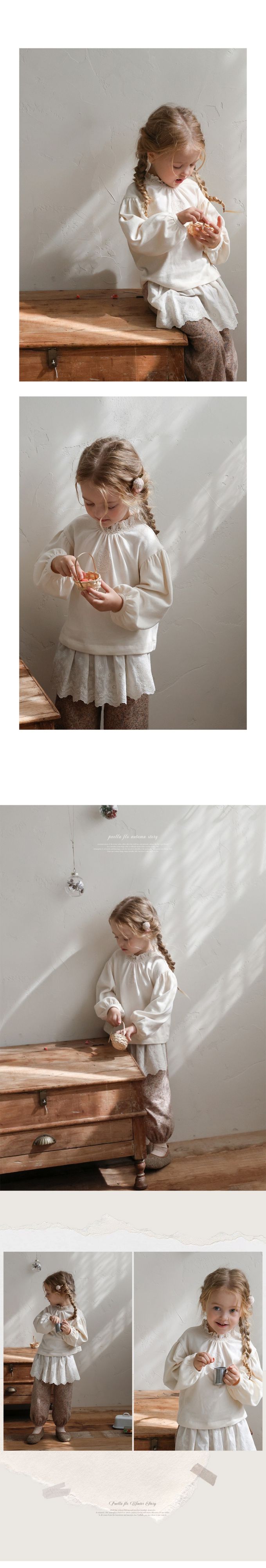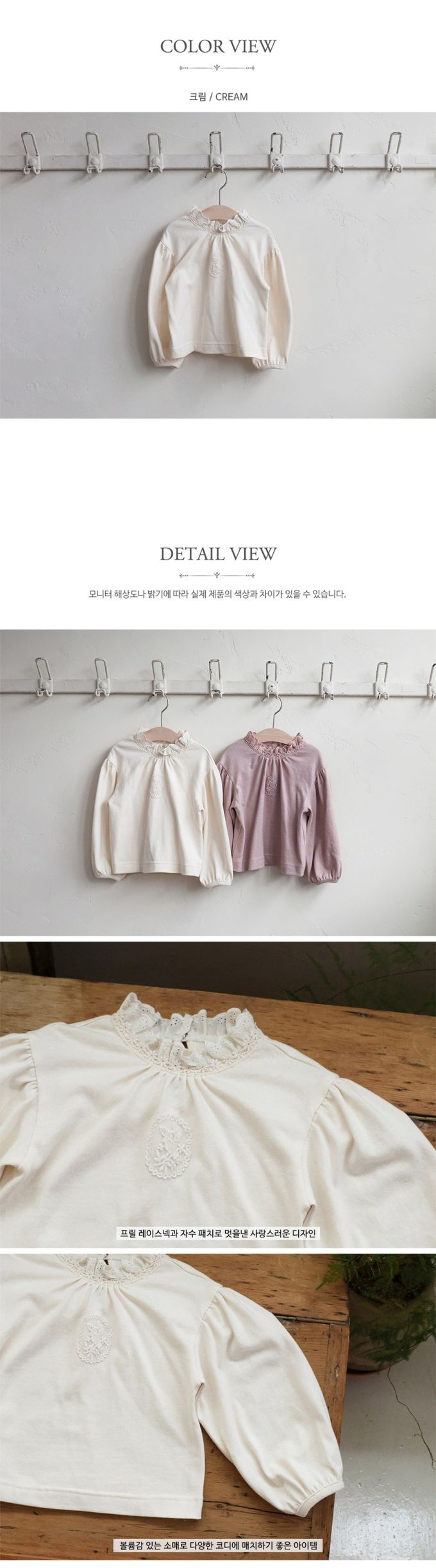 韓國南大門童裝 - Puellaflo 蕾絲花領澎澎長袖上衣-米白