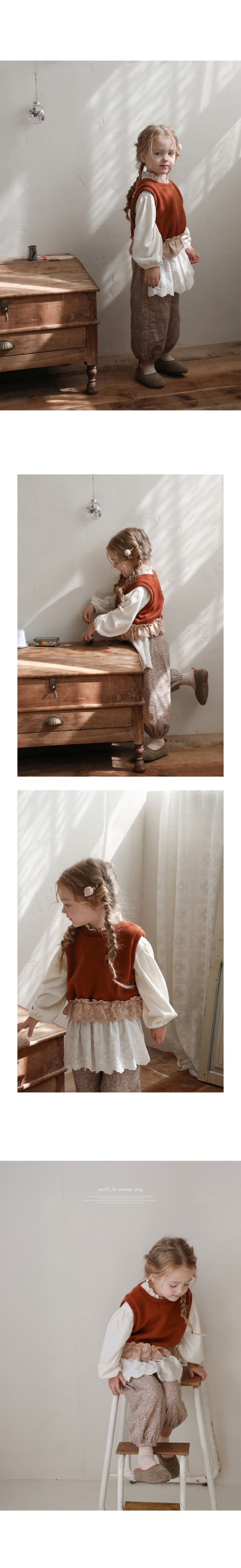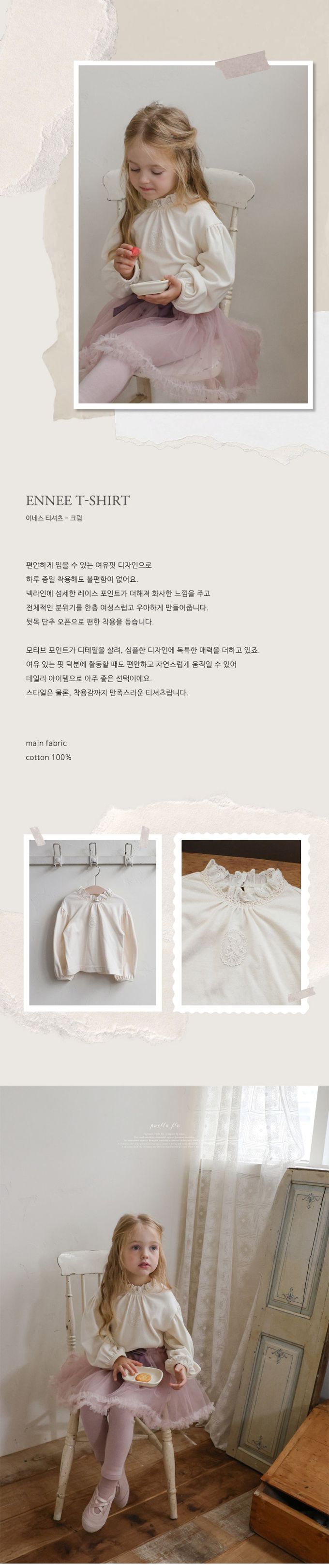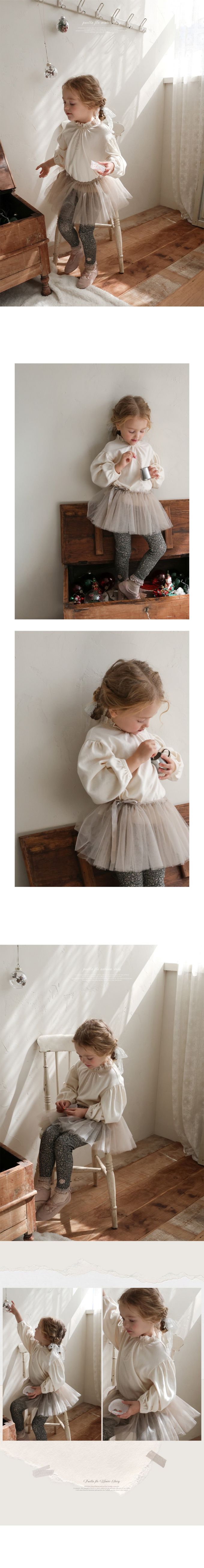 韓國南大門童裝 - Puellaflo 蕾絲花領澎澎長袖上衣-米白