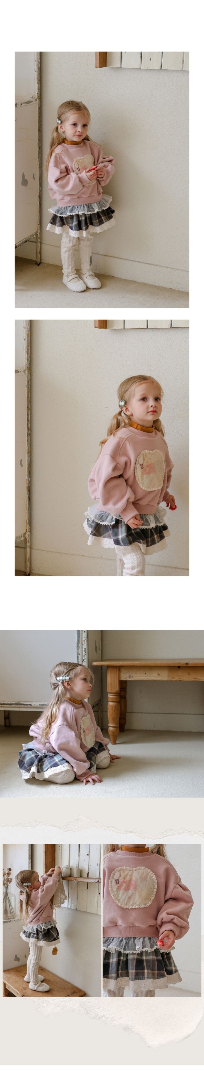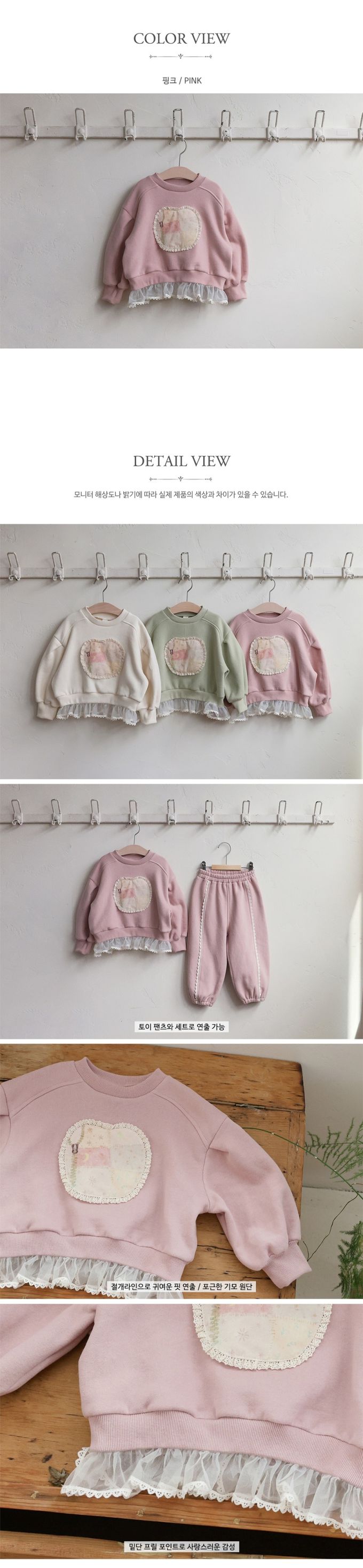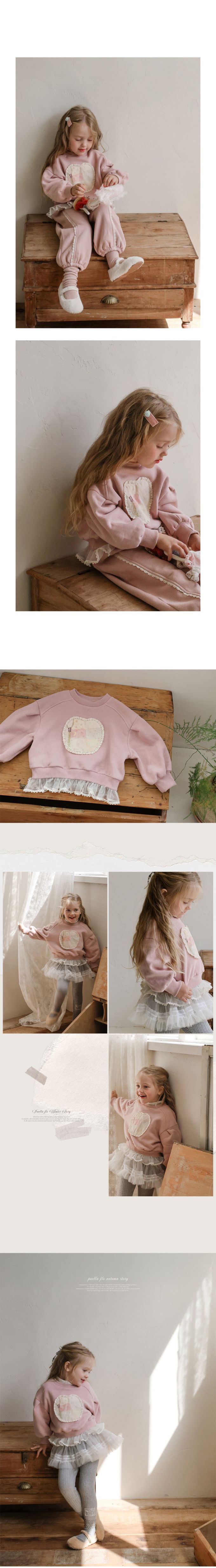 韓國南大門童裝 - Puellaflo (內磨毛)甜美拼布點綴網紗襬長袖大學T-粉