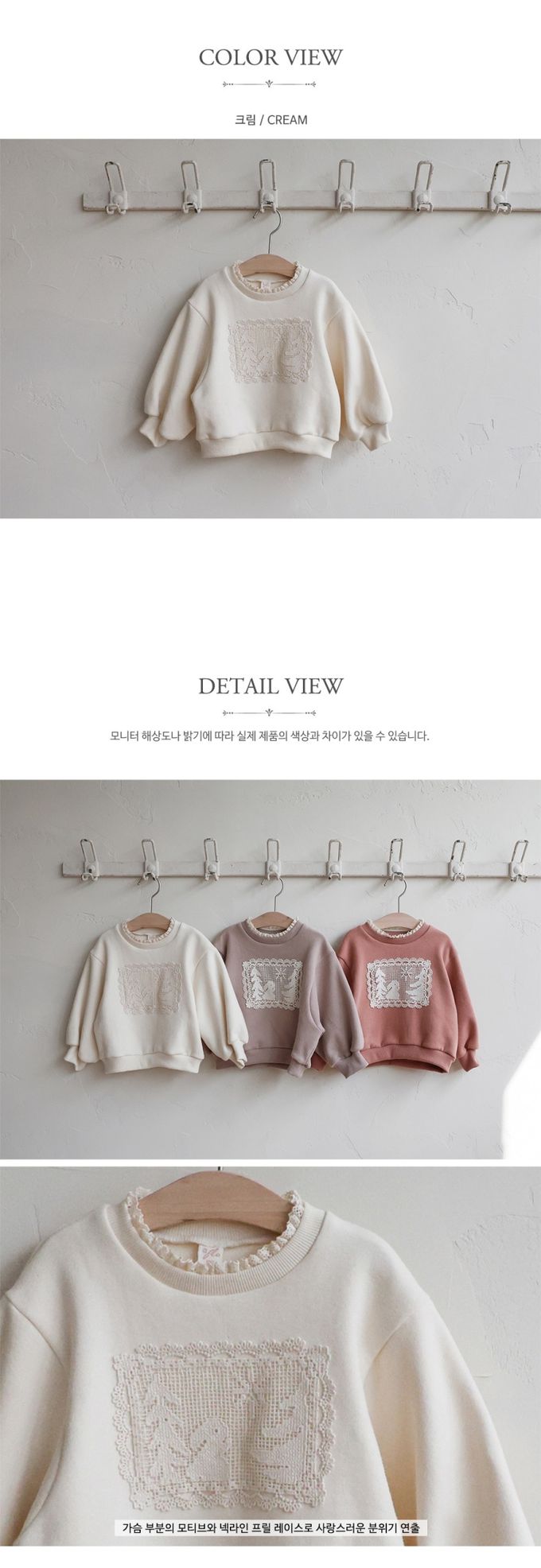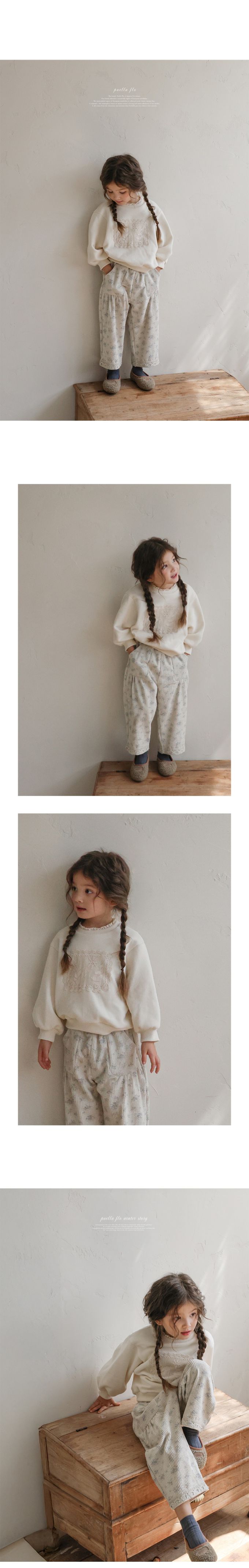 韓國南大門童裝 - Puellaflo (內磨毛)冬日風格蕾絲點綴長袖大學T-米白
