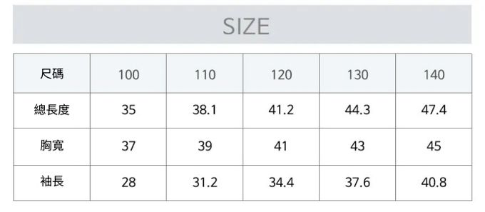 1. 尺寸表單位皆為公分(cm),實際尺寸會因布料彈性、水洗、測量起迄點等因素略有誤差。