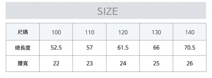 1. 尺寸表單位皆為公分(cm),實際尺寸會因布料彈性、水洗、測量起迄點等因素略有誤差。