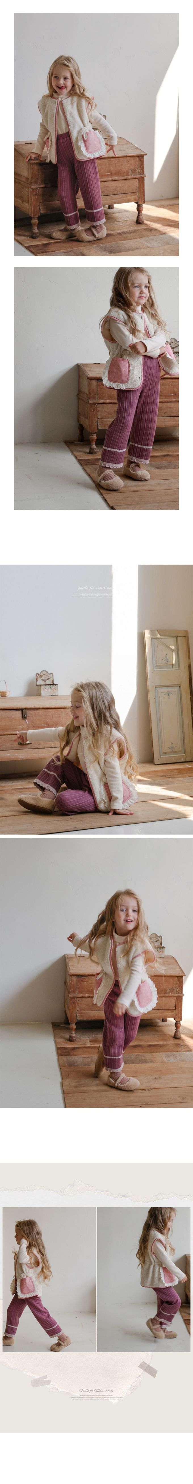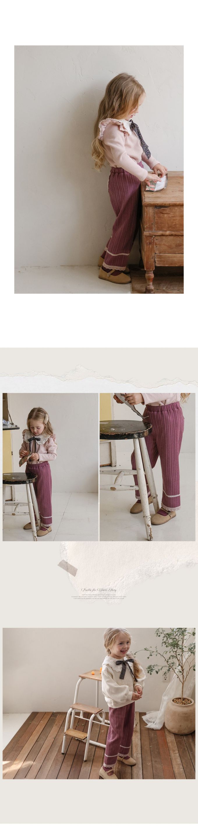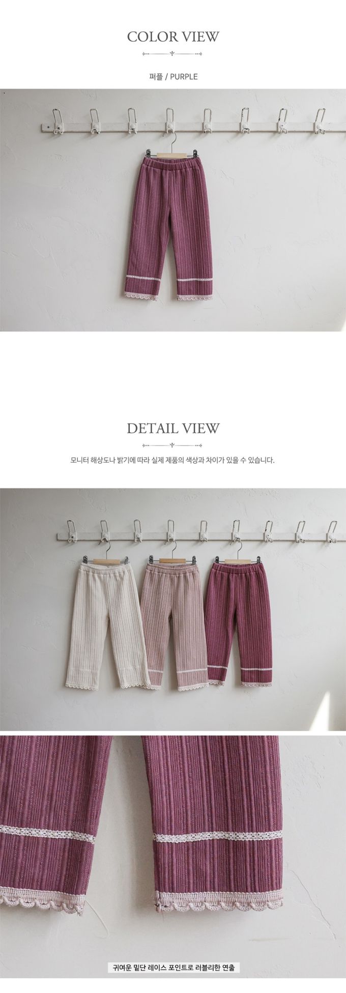 韓國南大門童裝 - Puellaflo (內磨毛)鬆緊腰蕾絲花邊羅紋長褲-葡萄紫