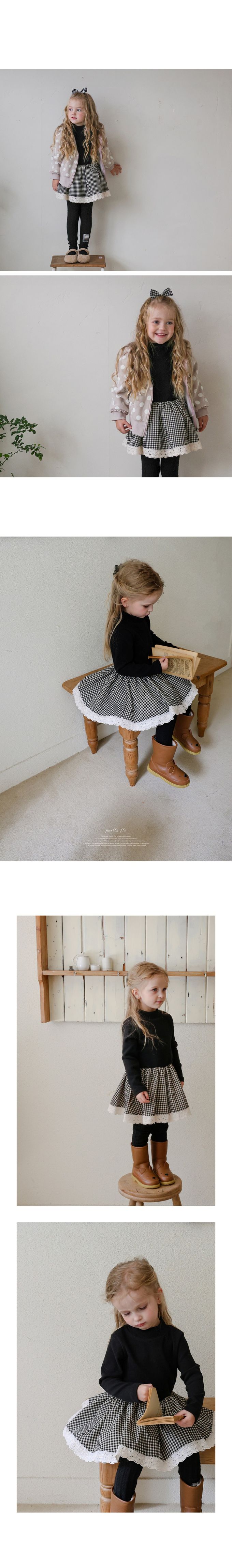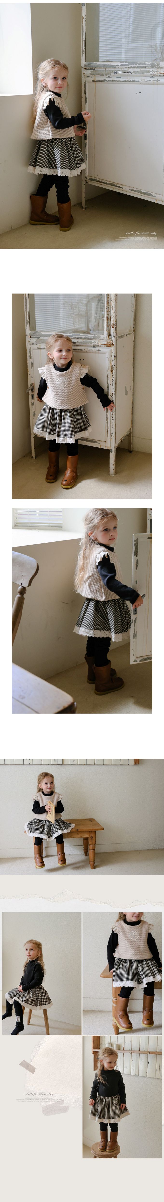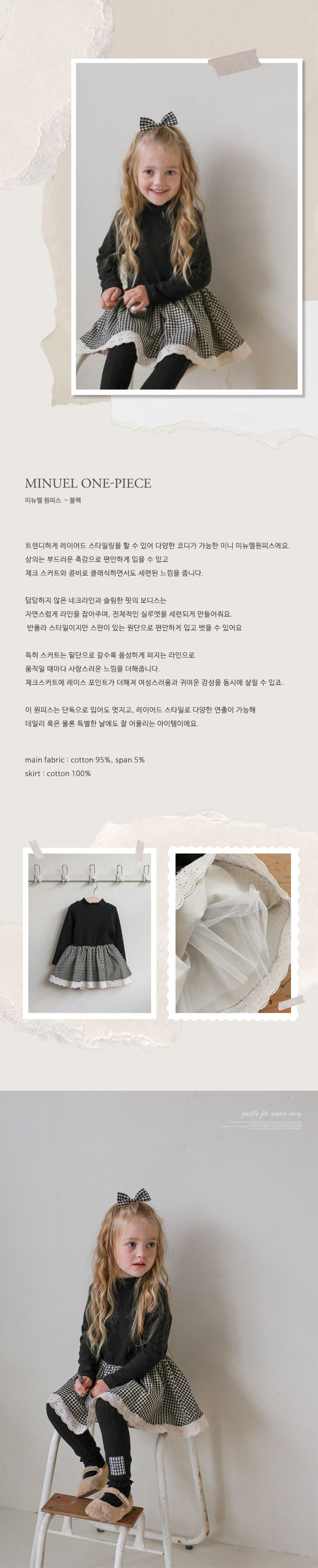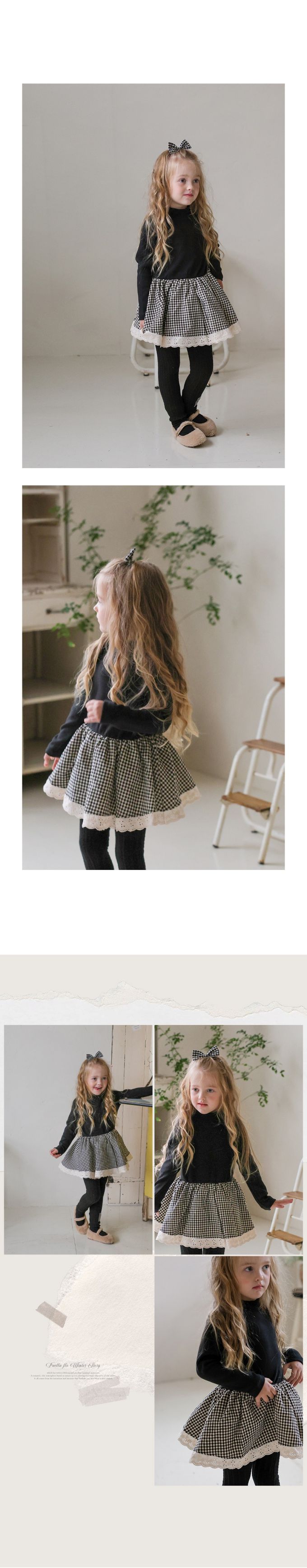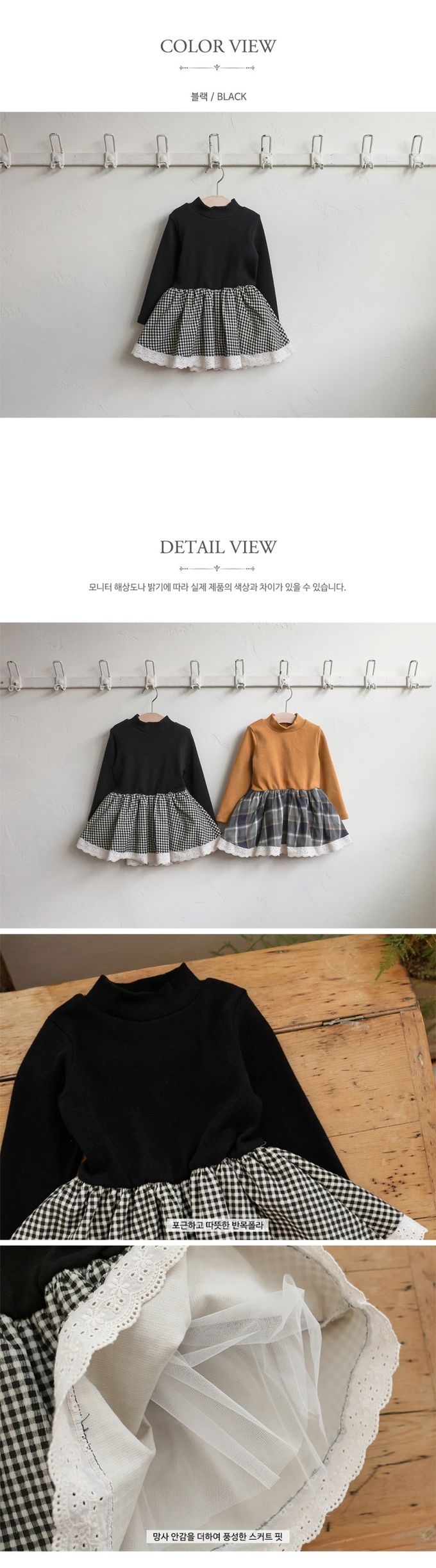 韓國南大門童裝 - Puellaflo 經典黑拼接小格紋蕾絲蓬蓬裙洋裝
