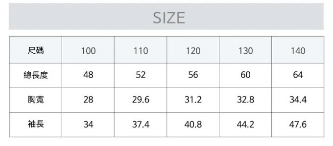 1. 尺寸表單位皆為公分(cm),實際尺寸會因布料彈性、水洗、測量起迄點等因素略有誤差。