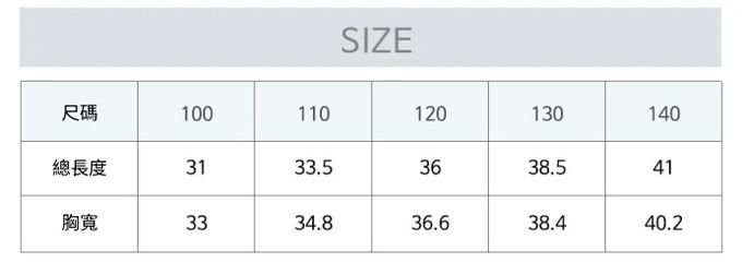1. 尺寸表單位皆為公分(cm),實際尺寸會因布料彈性、水洗、測量起迄點等因素略有誤差。