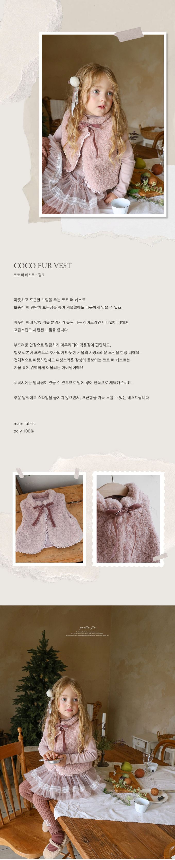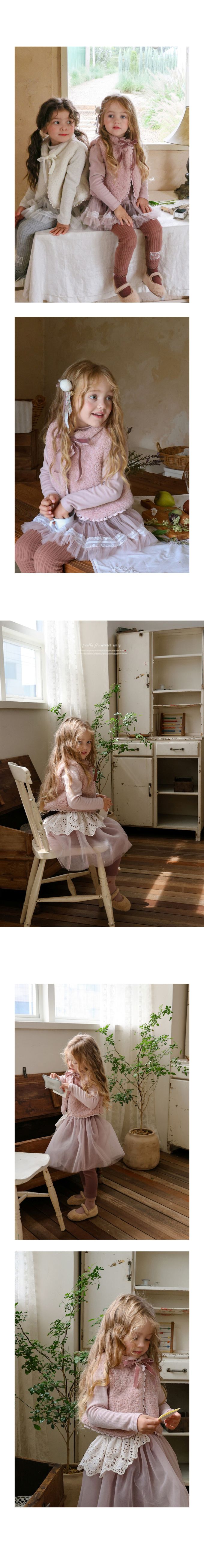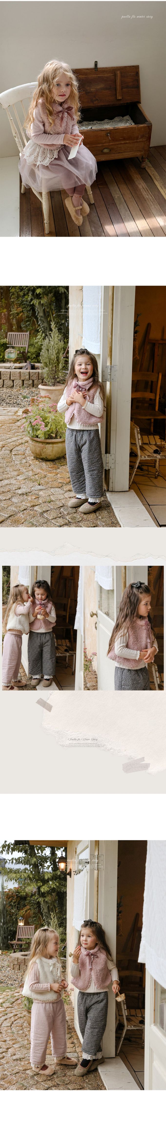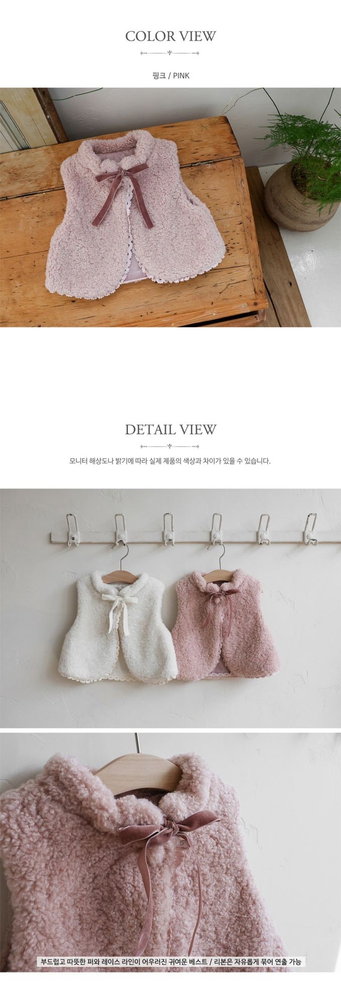 韓國南大門童裝 - Puellaflo 捲捲毛絨蝴蝶結保暖背心-粉