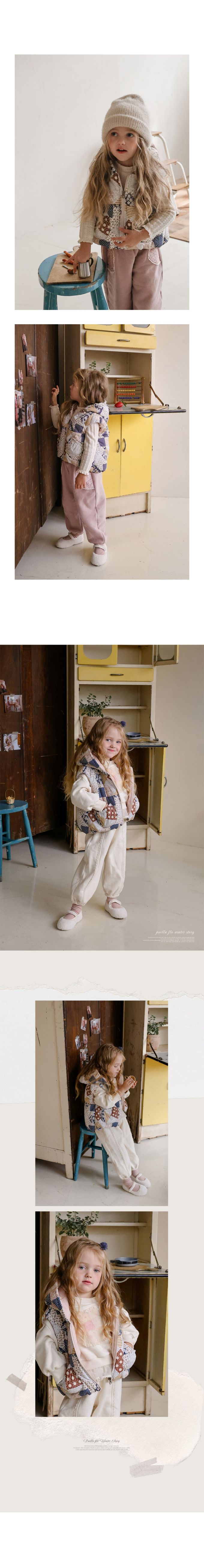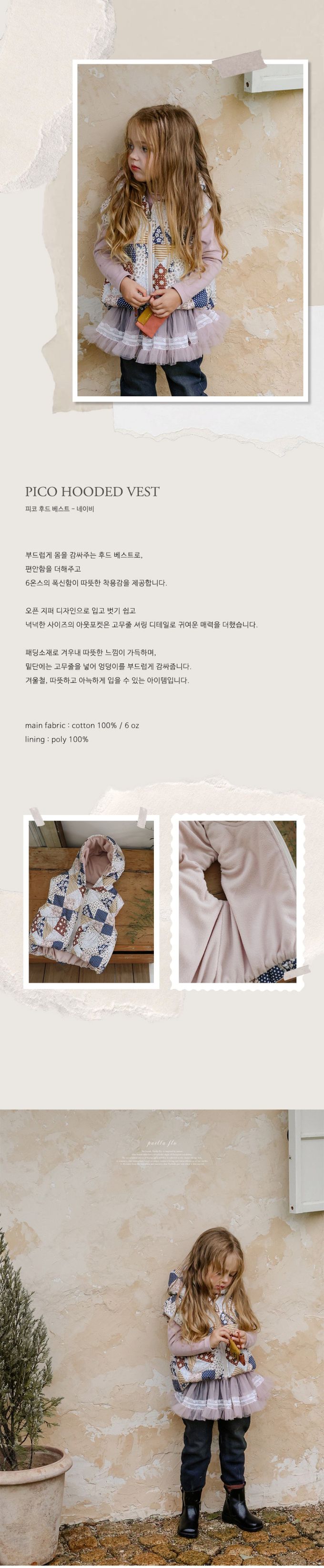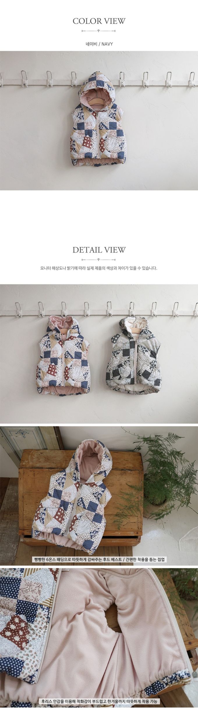 韓國南大門童裝 - Puellaflo 文藝拼接風保暖鋪棉連帽背心-海軍藍X淡粉