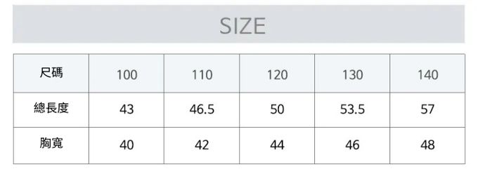 1. 尺寸表單位皆為公分(cm),實際尺寸會因布料彈性、水洗、測量起迄點等因素略有誤差。
